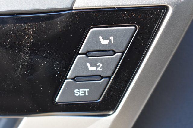 - Leather-trimmed seats with contrast stitching; 8-way power-adjustable driver and front passenger seats with power-adjustable lumbar support