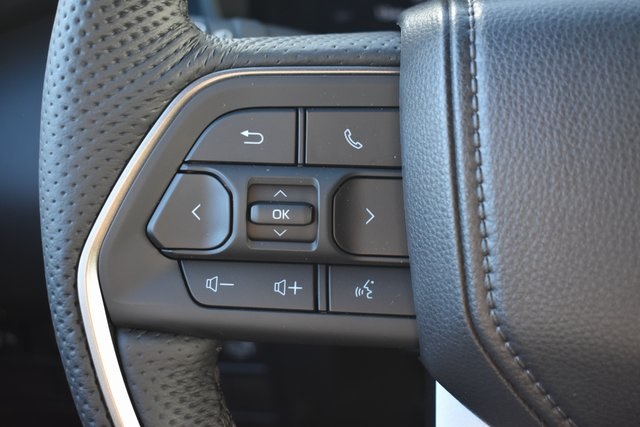- Leather-wrapped manual tilt/telescopic steering wheel with phone, audio, display/infotainment, and Driver Assist controls