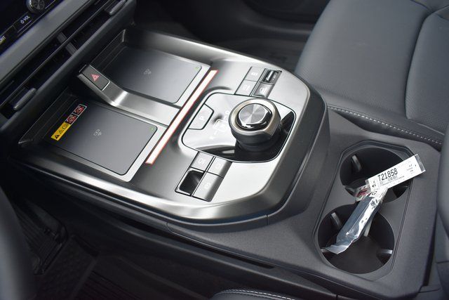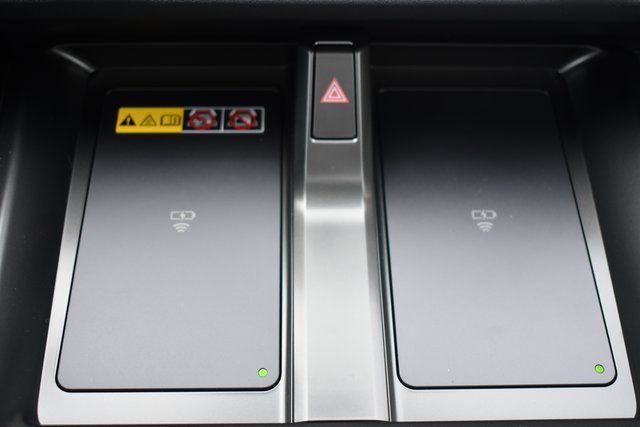 - Center console with covered storage compartment, two cup holders, two Qi-compatible wireless chargers and front lower storage tray