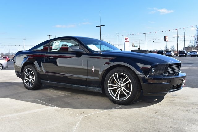 2007 Ford Mustang Black V6 Deluxe 4.0L V6 SOHC 5-Speed Manual T5 RWD Leather, Local Trade, Mustang V6 Deluxe, 5-Speed Manual T5, RWD, Black, Black/Chamois Accent w/Aberdeen Embossed Leather Sport Bucket Seats, 4 Speakers, 6-Way Power Adjustable Driver Seat, Air Conditioning, Alloy wheels, AM/FM radio, Bumpers: body-color, CD player, Driver door bin, Driver vanity mirror, Fabric Bucket Seats, Front Center Armrest, Front reading lights, Illuminated entry, Low tire pressure warning, Panic alarm, Passenger door bin, Passenger vanity mirror, Power door mirrors, Power steering, Power windows, Rear window defroster, Remote keyless entry, Speed control, Split folding rear seat, Variably intermittent wipers.