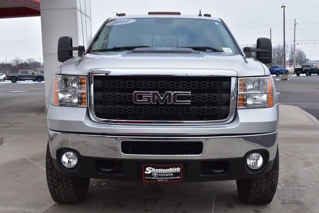 2011 GMC Sierra 2500HD Pure Silver Metallic SLE Duramax 6.6L V8 Turbodiesel Allison 1000 6-Speed Automatic 4WD Towing/Camper Pkg, Sierra 2500HD SLE, Allison 1000 6-Speed Automatic, 4WD, Pure Silver Metallic, Light Titanium/Dark Titanium Accents w/Premium Cloth Seat Trim, 6 Speakers, ABS brakes, Air Conditioning, Alloy wheels, AM/FM radio: XM, Bumpers: chrome, Driver & Front Passenger Vanity Mirror Visors, Driver door bin, Driver vanity mirror, Driver-Side Manual Lumbar Control Seat Adjuster, Dual-Zone Automatic Climate Control, Electric Rear-Window Defogger, Front Center Armrest w/Storage, Front reading lights, Fully automatic headlights, Illuminated entry, Panic alarm, Passenger door bin, Passenger vanity mirror, Power door mirrors, Power Rear Sliding Window, Power steering, Power windows, Power Windows w/Driver Express-Down, Power-Adjustable Black Heated Outside Mirrors, Power-Adjustable Heated Outside Mirrors, Power-Adjustable Pedals For Accelerator & Brake, Radio data system, Rear seat center armrest, Rear step bumper, Remote keyless entry, Speed control, Split folding rear seat, Tilt steering wheel, Traction control.