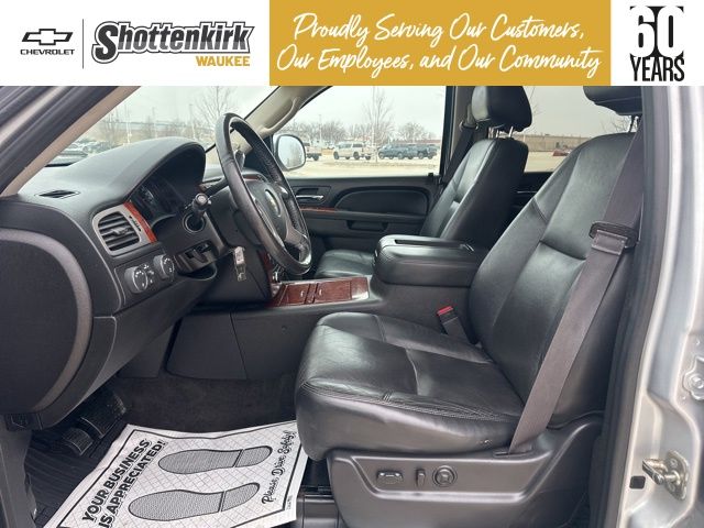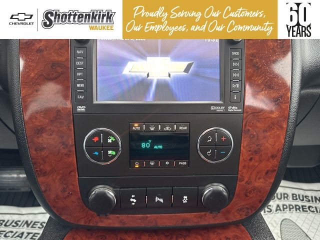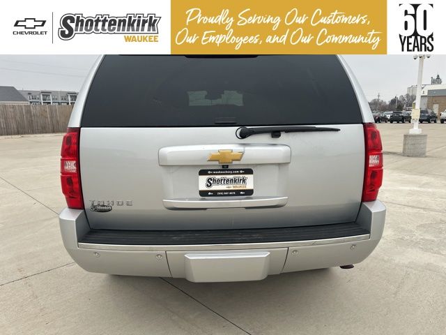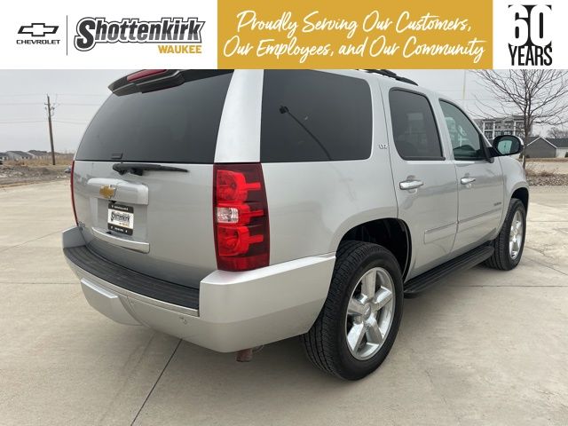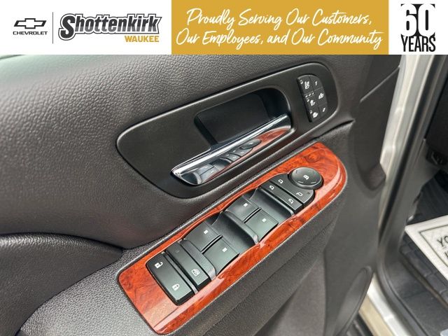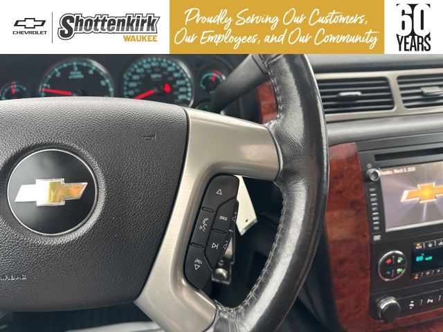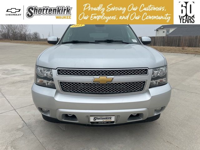 Silver Ice Metallic 2013 Chevrolet Tahoe LTZ w/Sun, Entertainment & Destinations Package 4D Sport Utility Vortec 5.3L V8 SFI Flex Fuel Iron Block 4WD 6-Speed Automatic Electronic with Overdrive 2-Speed Active Electronic AutoTrac Transfer Case, 2nd Row Power Seat Release, 2nd Row Reclining Bucket Seats, 3.42 Rear Axle Ratio, 3RD ROW SEATING, Auto-Dimming Inside Rear-View Mirror, Automatic Tri-Zone Air Conditioning, Autoride Suspension Package, Bose Centerpoint 10-Spkr Audio System Feature, Bright Chrome Door Handles, Bright Chrome Grille Insert, Chrome Recovery Hooks, Front Halogen Fog Lamps, Heated & Cooled Driver & Front Passenger Seats, Heated 2nd Row Seats, Heated Leather-Wrapped Steering Wheel, Heavy-Duty Air-to-Oil Auxiliary Transmission Oil Cooler, Heavy-Duty Air-to-Oil External Engine Oil Cooler, Heavy-Duty Rear Locking Differential, Heavy-Duty Trailering Package, LEATHER, Power Adjustable Pedals For Accelerator & Brake, Power Folding & Adjustable Heated Outside Mirrors, Power Tilt-Sliding Sunroof, Preferred Equipment Group 1LZ, Rear Color-Keyed Fascia w/Chrome Strip, Rear Park Assist, Rear Power-Operated Liftgate, Rear Seat Entertainment System, Rear Vision Camera, Remote Vehicle Starter System, Side Blind Zone Alert, Sun, Entertainment & Destinations Package, SUNROOF, Universal Home Remote. Clean CARFAX.