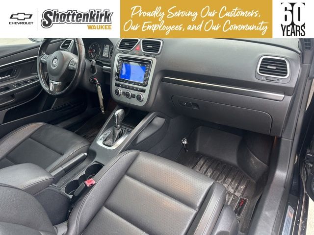 Black Pearl 2013 Volkswagen Eos Sport 2D Convertible 2.0L TSI 200 hp FWD 6-Speed DSG Automatic with Tiptronic 18" Vicenza Alloy Wheels, ABS brakes, Alloy wheels, Comfort Heated Front Seats, Convertible HardTop, Electronic Stability Control, Front dual zone A/C, Heated door mirrors, Heated front seats, Illuminated entry, LEATHER, Low tire pressure warning, Power moonroof, Remote keyless entry, Traction control. Clean CARFAX.