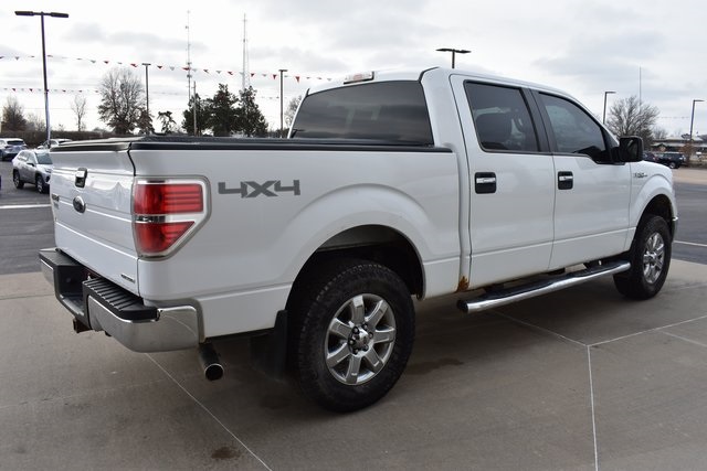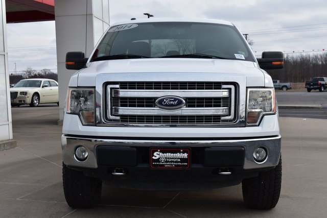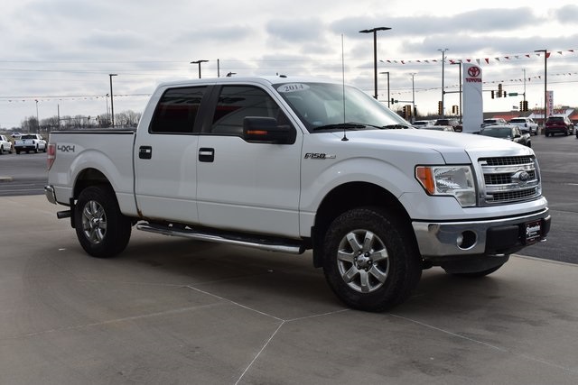 2014 Ford F-150 Oxford White XLT 5.0L V8 FFV 6-Speed Automatic Electronic 4WD Fixed Running Boards, Towing/Camper Pkg, Clean Carfax, Local Trade, F-150 XLT, 6-Speed Automatic Electronic, 4WD, Oxford White, Steel Gray w/Cloth 40/20/40 Front Seat, 4 Speakers, 6-Way Power Driver Seat, ABS brakes, Air Conditioning, Alloy wheels, AM/FM radio, Bumpers: chrome, CD player, Cloth 40/20/40 Front Seat, Compass, Driver door bin, Driver vanity mirror, Front Center Armrest w/Storage, Front License Plate Bracket, Front reading lights, Fully automatic headlights, Heated Power Side Mirrors, Illuminated entry, Leather-Wrapped Steering Wheel, Low tire pressure warning, Outside temperature display, Overhead console, Panic alarm, Passenger door bin, Passenger vanity mirror, Power door mirrors, Power steering, Power windows, Radio data system, Rear step bumper, Remote keyless entry, Self-Dimming Rear-View Mirror, Speed control, Speed-sensing steering, Split folding rear seat, Steering wheel mounted audio controls, Tilt steering wheel, Traction control, Variably intermittent wipers.