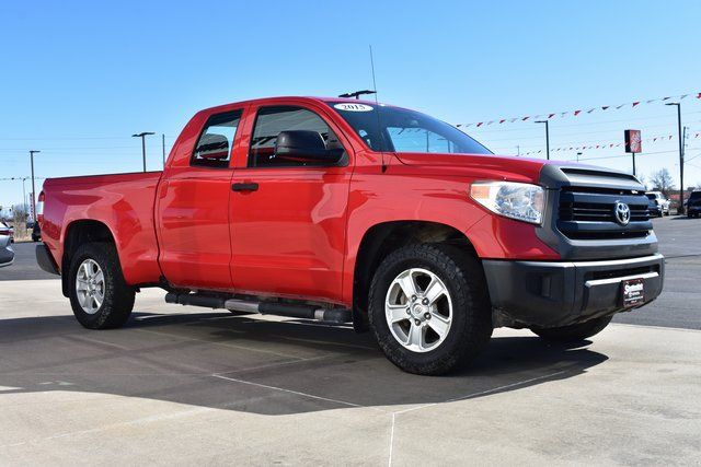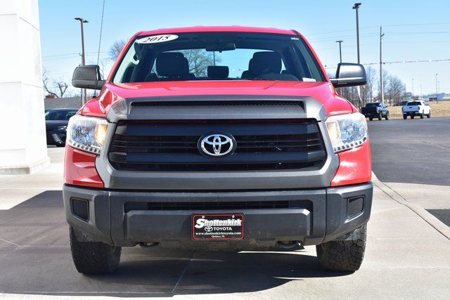 2015 Toyota Tundra Red SR 4.6L V8 DOHC 32V 6-Speed Automatic Electronic with Overdrive 4WD Fixed Running Boards, Towing/Camper Pkg, Clean Carfax, Local Trade, Backup Camera, Tundra SR, 6-Speed Automatic Electronic with Overdrive, 4WD, Red, Graphite w/Fabric Seat Trim or Heavy Duty Vinyl Seat Trim, 3-Passenger Front Bench Seat, 6 Speakers, ABS brakes, Air Conditioning, AM/FM radio, CD player, Driver door bin, Exterior Parking Camera Rear, Fabric Seat Trim, Front Center Armrest w/Storage, Front reading lights, Heated door mirrors, Illuminated entry, Low tire pressure warning, Overhead console, Panic alarm, Passenger door bin, Power door mirrors, Power steering, Power windows, Rear step bumper, Remote keyless entry, Speed control, Split folding rear seat, Tachometer, Tilt steering wheel, Traction control, Variably intermittent wipers.