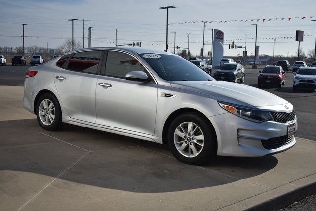 2016 Kia Optima Silky Silver LX 2.4L I4 DGI DOHC 6-Speed Automatic with Sportmatic FWD Clean Carfax, Backup Camera, Optima LX, 6-Speed Automatic with Sportmatic, FWD, Silky Silver, Black Cloth, 4-Wheel Disc Brakes, 6 Speakers, ABS brakes, Air Conditioning, Alloy wheels, AM/FM radio: SiriusXM, AM/FM/CD/MP3 Radio, Bumpers: body-color, CD player, Driver door bin, Driver vanity mirror, Electronic Stability Control, Exterior Parking Camera Rear, Front Bucket Seats, Front Center Armrest, Front reading lights, Fully automatic headlights, Illuminated entry, Low tire pressure warning, Occupant sensing airbag, Outside temperature display, Overhead console, Panic alarm, Passenger door bin, Passenger vanity mirror, Power door mirrors, Power steering, Power windows, Rear seat center armrest, Rear window defroster, Remote keyless entry, Speed control, Split folding rear seat, Steering wheel mounted audio controls, Telescoping steering wheel, Tilt steering wheel, Traction control, Turn signal indicator mirrors.