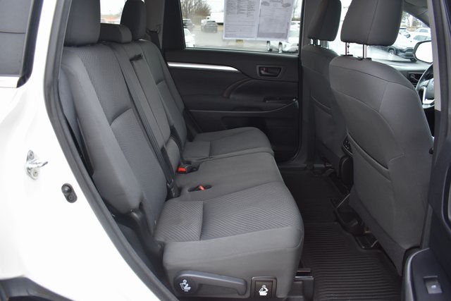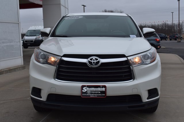 2016 Toyota Highlander White LE V6 3.5L V6 DOHC Dual VVT-i 24V 6-Speed Automatic Electronic with Overdrive AWD Clean Carfax, Local Trade, Backup Camera, Highlander LE V6, 6-Speed Automatic Electronic with Overdrive, AWD, White, Ash w/Fabric Seat Material, 6 Speakers, ABS brakes, Air Conditioning, Alloy wheels, AM/FM radio, Bumpers: body-color, CD player, Driver door bin, Driver vanity mirror, Exterior Parking Camera Rear, Front Bucket Seats, Front Center Armrest, Front reading lights, Fully automatic headlights, Heated door mirrors, Illuminated entry, Low tire pressure warning, Outside temperature display, Overhead console, Panic alarm, Passenger door bin, Passenger vanity mirror, Power door mirrors, Power steering, Power windows, Rear air conditioning, Rear window defroster, Rear window wiper, Reclining 3rd row seat, Remote keyless entry, Speed control, Split folding rear seat, Spoiler, Steering wheel mounted audio controls, Telescoping steering wheel, Tilt steering wheel, Traction control, Turn signal indicator mirrors.