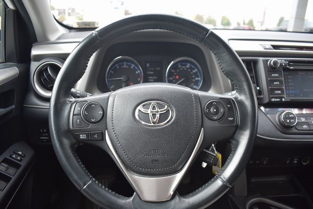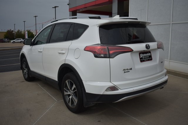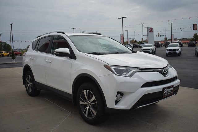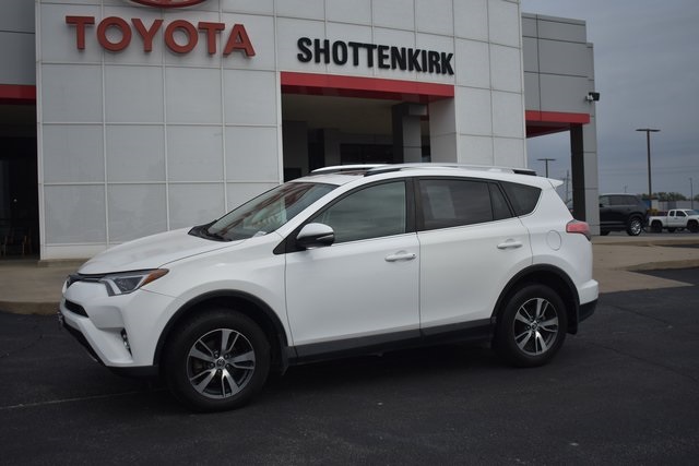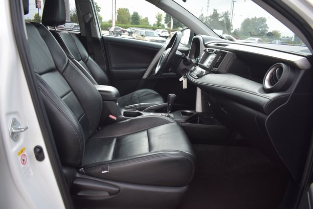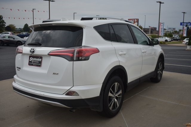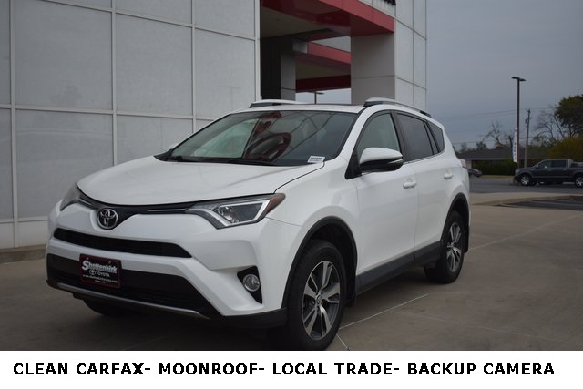 2016 Toyota RAV4 White XLE 2.5L 4-Cylinder DOHC Dual VVT-i 6-Speed Automatic FWD Clean Carfax, Sunroof/Moonroof, Leather, Local Trade, Backup Camera, RAV4 XLE, 6-Speed Automatic, FWD, White, Black w/SofTex Seat Trim, 6 Speakers, ABS brakes, Air Conditioning, Alloy wheels, AM/FM radio: SiriusXM, Automatic temperature control, Bumpers: body-color, Driver door bin, Driver vanity mirror, Exterior Parking Camera Rear, Fabric Seat Trim, Front Bucket Seats, Front Center Armrest, Front dual zone A/C, Front reading lights, Front Sport Seats, Heated door mirrors, Illuminated entry, Leather steering wheel, Low tire pressure warning, Outside temperature display, Overhead console, Panic alarm, Passenger door bin, Passenger vanity mirror, Power door mirrors, Power Liftgate, Power moonroof, Power steering, Power windows, Radio data system, Rear seat center armrest, Rear window defroster, Rear window wiper, Roof rack: rails only, Speed control, Split folding rear seat, Spoiler, Steering wheel mounted audio controls, Telescoping steering wheel, Tilt steering wheel, Traction control, Turn signal indicator mirrors.