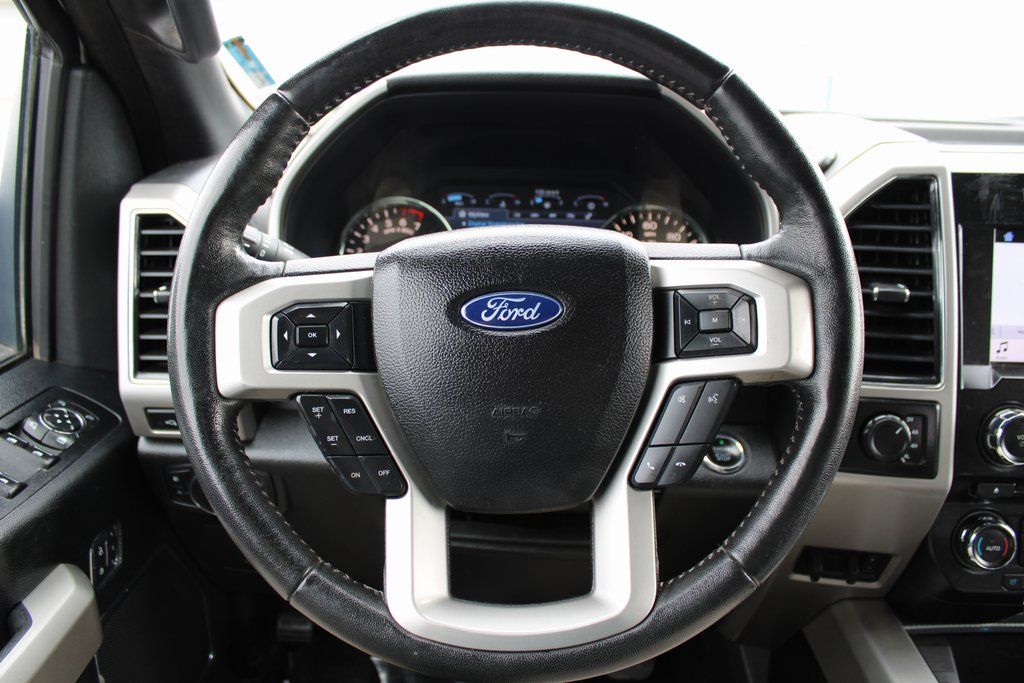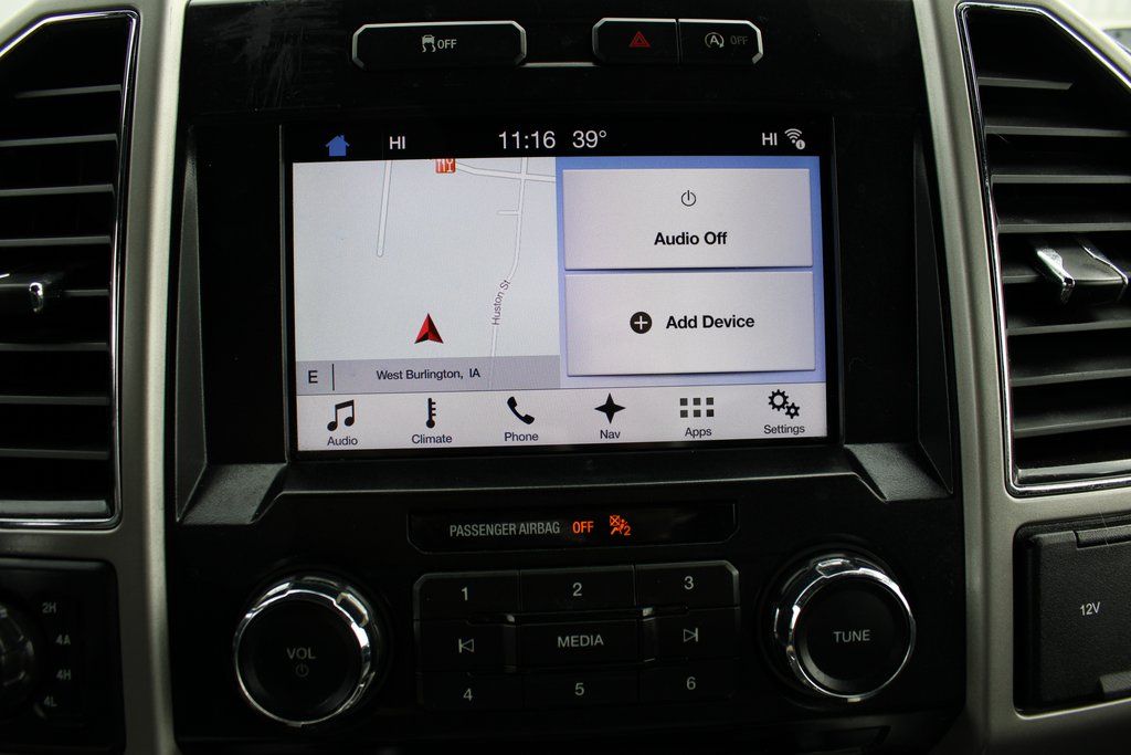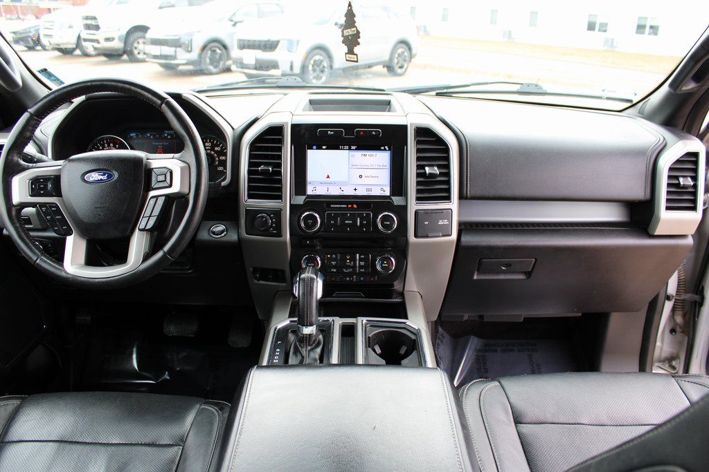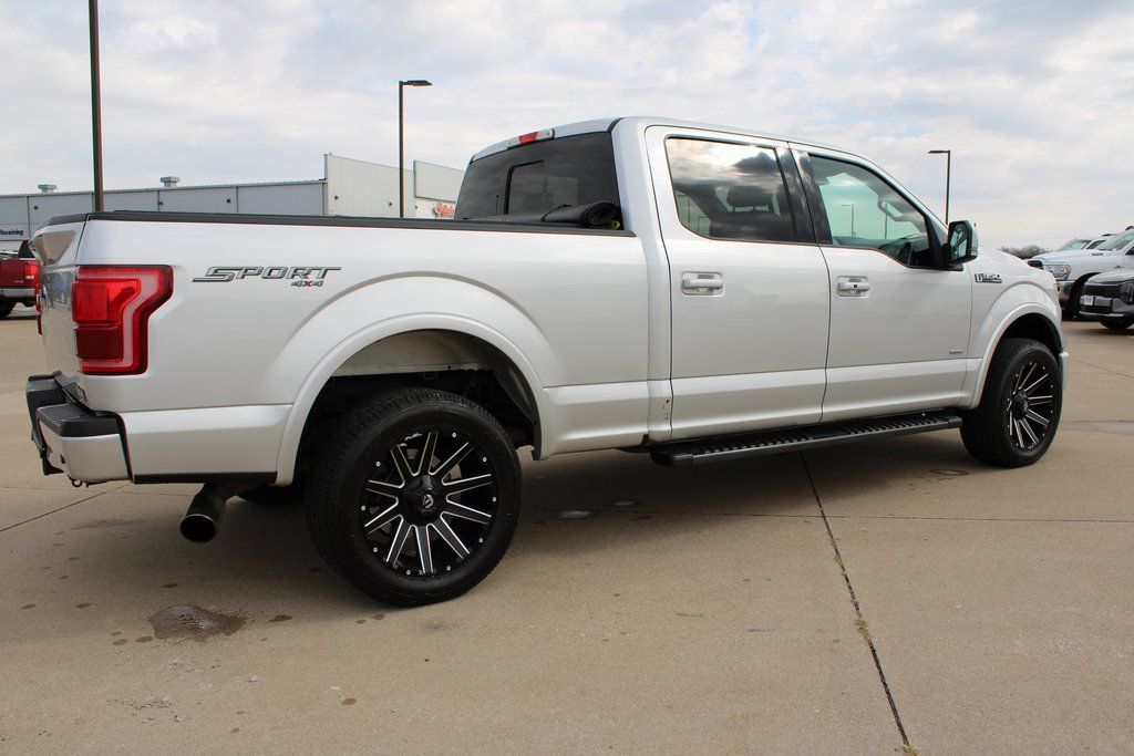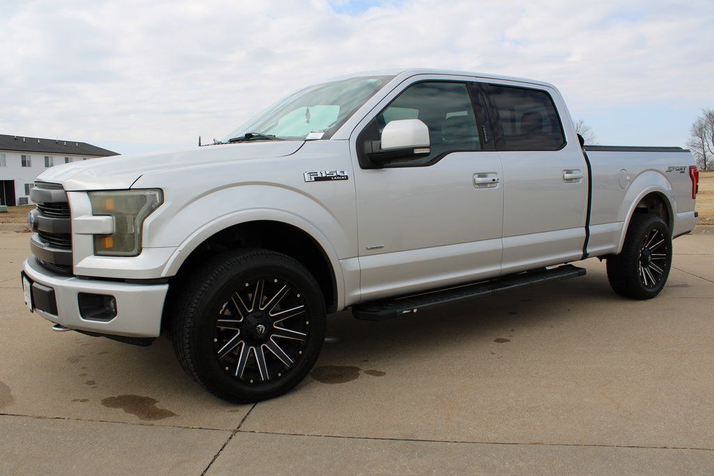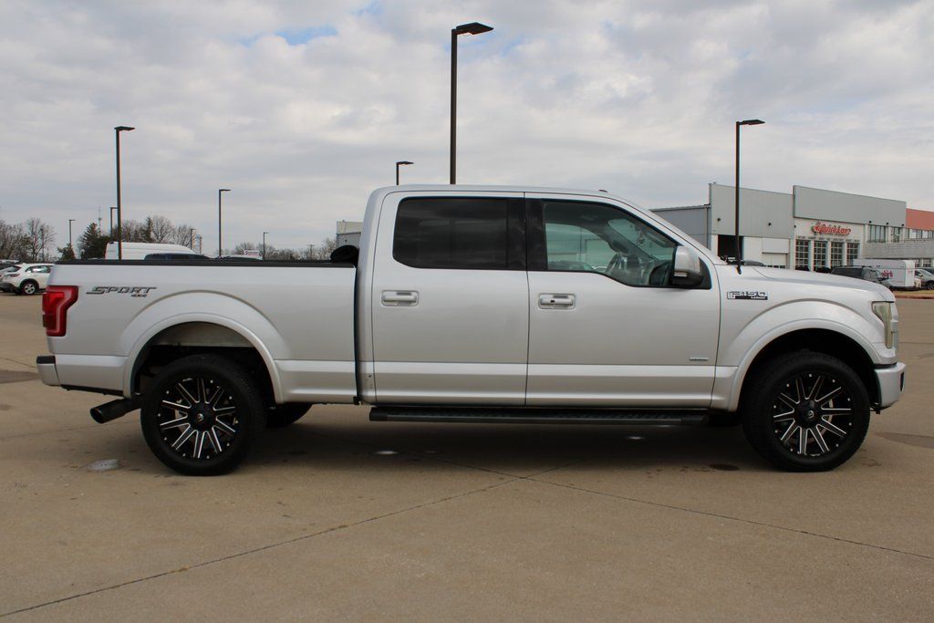 2017 Ford F-150 Lariat Ingot Silver Metallic 4D SuperCrew 3.5L V6 10-Speed Automatic 4WD Lariat This vehicle comes well equipped with Equipment Group 501A Mid (110V/400W Outlet, BLIS Blind Spot Information System, LED Side-Mirror Spotlights, Power Glass Sideview Mirr w/Body-Color Skull Caps, Remote Start System w/Remote Tailgate Release, Reverse Sensing System, and Universal Garage Door Opener), GVWR: 6,500 lbs Payload Package, Lariat Sport Appearance Package (Accent-Color 3-Bar Style Grille, Accent-Color Angular Step Bars, Body-Color Front & Rear Bumpers, Box Side Decal, Single-Tip Chrome Exhaust, and Wheels: 18" 6-Spoke Machined-Aluminum), 18" Machined-Aluminum Wheels, 3.55 Axle Ratio, 4-Wheel Disc Brakes, 7 Speakers, ABS brakes, Adjustable pedals, Air Conditioning, Alloy wheels, AM/FM radio: SiriusXM, Auto-dimming door mirrors, Auto-dimming Rear-View mirror, Automatic temperature control, Brake assist, Bumpers: chrome, CD player, Class IV Trailer Hitch Receiver, Compass, Delay-off headlights, Driver door bin, Driver vanity mirror, Dual front impact airbags, Dual front side impact airbags, Electronic Stability Control, Exterior Parking Camera Rear, Front anti-roll bar, Front Center Armrest w/Storage, Front dual zone A/C, Front fog lights, Front reading lights, Front wheel independent suspension, Fully automatic headlights, Heated door mirrors, Heated front seats, Illuminated entry, Integrated Trailer Brake Controller, Leather-Trimmed 40/20/40 Front Seat, Low tire pressure warning, Memory seat, Occupant sensing airbag, Outside temperature display, Overhead airbag, Overhead console, Panic alarm, Passenger door bin, Passenger vanity mirror, Pedal memory, Power door mirrors, Power driver seat, Power passenger seat, Power steering, Power windows, Radio data system, Radio: Single-CD w/SiriusXM Satellite, Rear reading lights, Rear seat center armrest, Rear step bumper, Rear window defroster, Remote keyless entry, Security system, Speed control, Speed-sensing steering, Split folding rear seat, Steering wheel mounted audio controls, SYNC 3, Tachometer, Tailgate Step w/Tailgate Lift Assist, Telescoping steering wheel, Tilt steering wheel, Traction control, Trip computer, Turn signal indicator mirrors, Variably intermittent wipers, Ventilated front seats, Voltmeter, and Wheels: 20" 6-Spoke Premium Painted Aluminum.