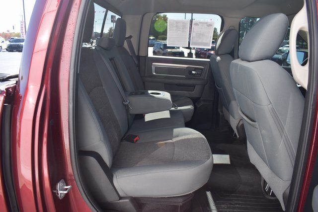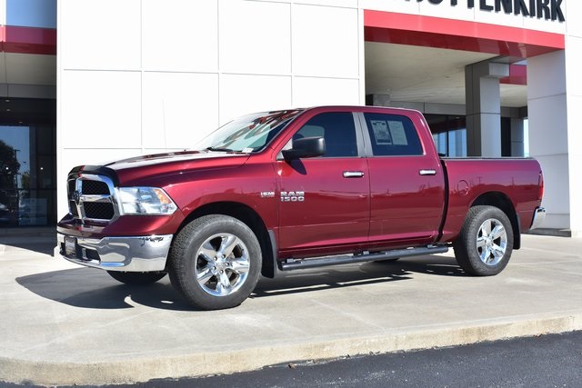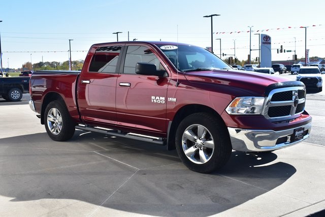 2017 Ram 1500 Delmonico Red Pearlcoat SLT HEMI 5.7L V8 Multi Displacement VVT 8-Speed Automatic 4WD Fixed Running Boards, Towing/Camper Pkg, Clean Carfax, Local Trade, Backup Camera, 1500 SLT, 8-Speed Automatic, 4WD, Delmonico Red Pearlcoat, Diesel Grey/Black Cloth, 6 Speakers, ABS brakes, Air Conditioning, Alloy wheels, AM/FM radio, Black Exterior Mirrors, Bumpers: chrome, Compass, Driver door bin, Front Armrest w/3 Cupholders, Front Center Armrest w/Storage, Front reading lights, Fully automatic headlights, Illuminated entry, Low tire pressure warning, Outside temperature display, Panic alarm, ParkView Rear Back-Up Camera, Passenger door bin, Passenger vanity mirror, Power door mirrors, Power steering, Power windows, Radio data system, Rear seat center armrest, Rear step bumper, Speed control, Storage Tray, Tilt steering wheel, Tip Start.