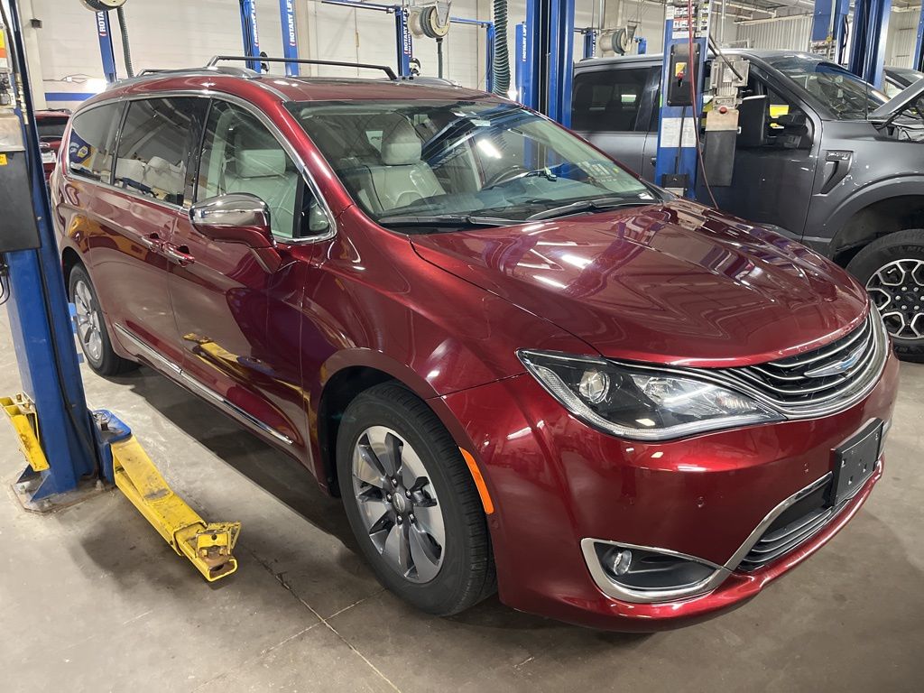 2018 Chrysler Pacifica Hybrid Limited Velvet Red Pearlcoat 4D Passenger Van 3.6L V6 CVT FWD Limited This vehicle comes well equipped with Advanced SafetyTec Group (360 Surround View Camera System, Adaptive Cruise Control w/Stop & Go, Advanced Brake Assist, Automatic High Beam Headlamp Control, Full Speed Forward Collision Warning Plus, Lane Departure Warning Plus, Parallel & Perpendicular Park Assist w/Stop, ParkSense Front/Rear Park Assist w/Stop, and Rain Sensitive Windshield Wipers), Quick Order Package 2EC, Uconnect Theater w/Streaming (115V Auxiliary Power Outlet, 3-Channel Video Remote Control, 3-Channel Wireless Headphones (RF), Blu-Ray/DVD Player/USB Port, High Definition Multimedia Interface, Seatback Video Screens, and Video USB Port), 13 Speakers, 18" x 7.5" Polished Aluminum Wheels, 3rd row seats: split-bench, 4-Wheel Disc Brakes, ABS brakes, Air Conditioning, Alloy wheels, AM/FM radio: SiriusXM, Apple CarPlay/Android Auto, Auto-dimming Rear-View mirror, Automatic temperature control, Axle Ratio: TBA, Bodyside moldings, Brake assist, Bumpers: body-color, Compass, Delay-off headlights, Driver door bin, Driver vanity mirror, Driver's Seat Mounted Armrest, Dual front impact airbags, Dual front side impact airbags, Electronic Stability Control, Emergency communication system: Uconnect Access, Four wheel independent suspension, Front anti-roll bar, Front Bucket Seats, Front dual zone A/C, Front fog lights, Front reading lights, Fully automatic headlights, Garage door transmitter, Heated door mirrors, Heated front seats, Heated steering wheel, Heavy Duty Suspension, Illuminated entry, KeySense, Knee airbag, Leather steering wheel, Low tire pressure warning, Manufacturer's Statement of Origin, Navigation System, Occupant sensing airbag, Outside temperature display, Overhead airbag, Overhead console, Panic alarm, ParkView Rear Back-Up Camera, Passenger door bin, Passenger seat mounted armrest, Passenger vanity mirror, Power door mirrors, Power driver seat, Power Liftgate, Power Open/Close Shade, Power passenger seat, Power steering, Power windows, Premium Leather Trim Bucket Seats, Radio data system, Radio: Uconnect 4C Nav w/8.4" Display, Rear air conditioning, Rear reading lights, Rear window defroster, Rear window wiper, Reclining 3rd row seat, Remote keyless entry, Roof rack, Security system, Speed control, Split folding rear seat, Spoiler, Steering wheel mounted audio controls, Telescoping steering wheel, Tilt steering wheel, Traction control, Tri Pane Panoramic Sunroof, Trip computer, Turn signal indicator mirrors, Variably intermittent wipers, Ventilated front seats, Voltmeter, and Wheels: 17" x 7" Polished Aluminum.