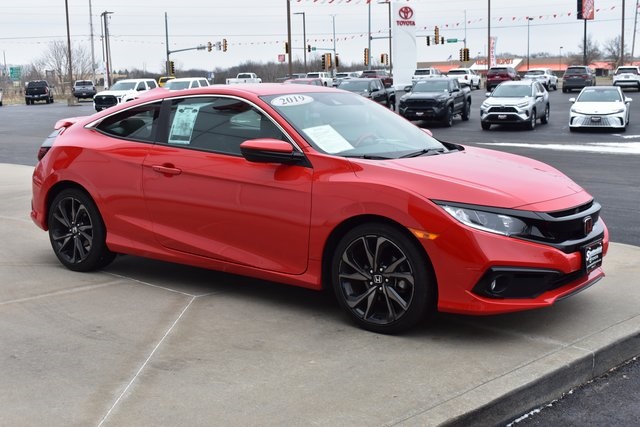 2019 Honda Civic Red Sport 2.0L I4 DOHC 16V i-VTEC CVT FWD Clean Carfax, Local Trade, Backup Camera, Civic Sport, CVT, FWD, Red, Black w/Fabric Seating Surfaces, 8 Speakers, ABS brakes, Air Conditioning, Alloy wheels, AM/FM radio, Automatic temperature control, Bumpers: body-color, Cloth Seat Trim, Driver door bin, Driver vanity mirror, Exterior Parking Camera Rear, Four wheel independent suspension, Front Bucket Seats, Front Center Armrest, Front reading lights, Fully automatic headlights, Illuminated entry, Leather Shift Knob, Low tire pressure warning, Occupant sensing airbag, Outside temperature display, Overhead airbag, Panic alarm, Passenger door bin, Passenger vanity mirror, Power door mirrors, Power steering, Power windows, Radio data system, Radio: 180-Watt AM/FM Audio System, Rear window defroster, Reclining Front Bucket Seats, Remote keyless entry, Speed control, Speed-sensing steering, Split folding rear seat, Steering wheel mounted audio controls, Telescoping steering wheel, Tilt steering wheel, Traction control.