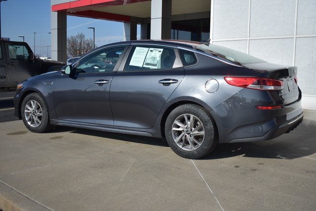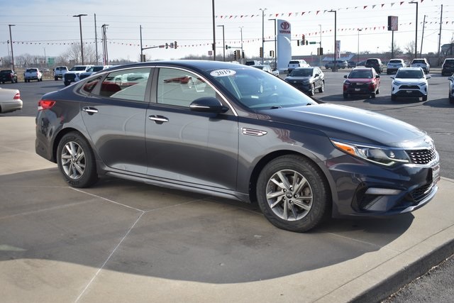 2019 Kia Optima Platinum Graphite LX 2.4L I4 DGI DOHC 6-Speed Automatic with Sportmatic FWD Clean Carfax, Local Trade, Backup Camera, Optima LX, 6-Speed Automatic with Sportmatic, FWD, Black Cloth, 6 Speakers, ABS brakes, Air Conditioning, Alloy wheels, AM/FM radio, Bumpers: body-color, Cloth Seat Trim, Driver door bin, Driver vanity mirror, Front Bucket Seats, Front Center Armrest, Front reading lights, Fully automatic headlights, Heated door mirrors, Illuminated entry, Low tire pressure warning, Occupant sensing airbag, Outside temperature display, Overhead console, Passenger door bin, Passenger vanity mirror, Power door mirrors, Power steering, Power windows, Radio data system, Radio: AM/FM/MP3 Audio System, Rear seat center armrest, Rear window defroster, Remote keyless entry, Security system, Speed control, Split folding rear seat, Steering wheel mounted audio controls, Telescoping steering wheel, Traction control, Turn signal indicator mirrors.
