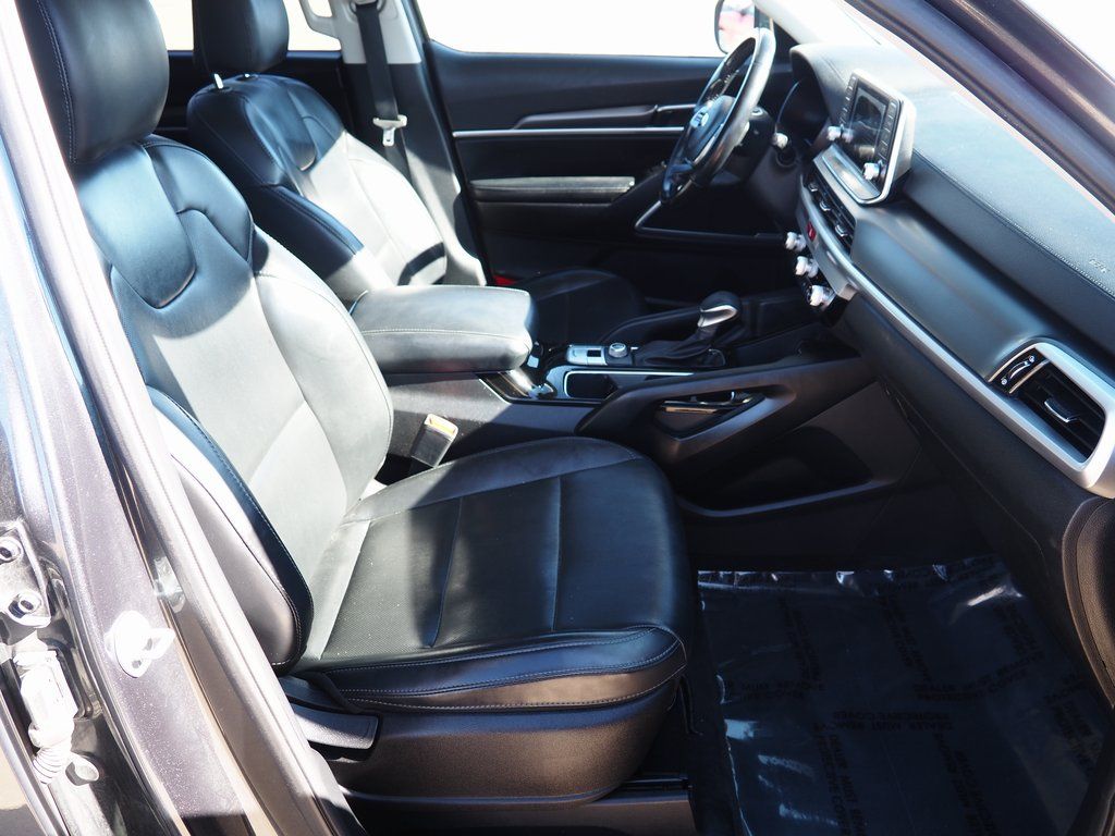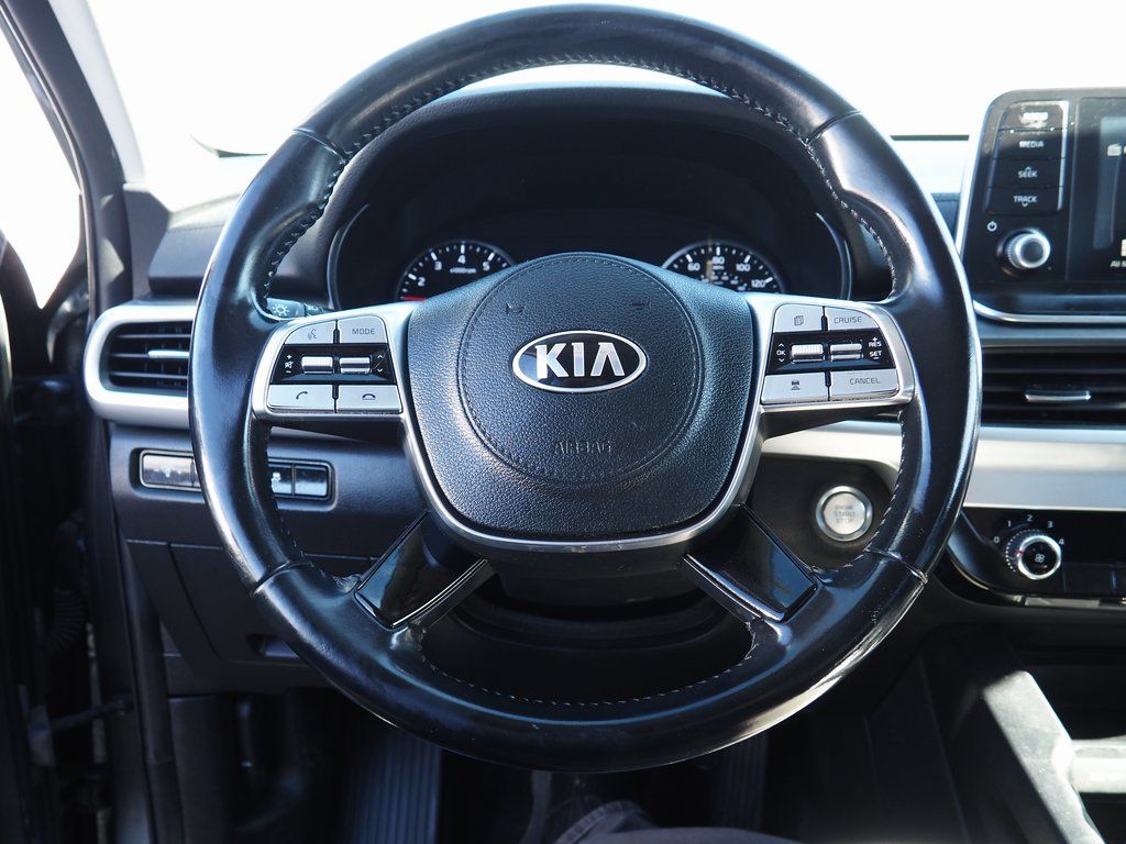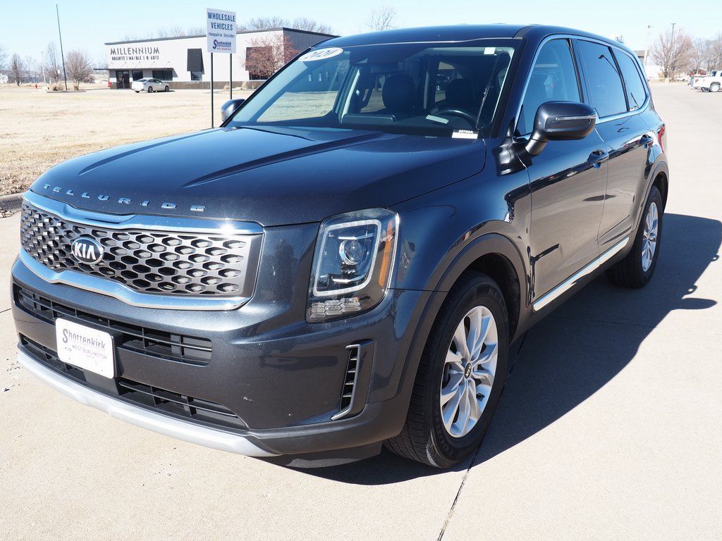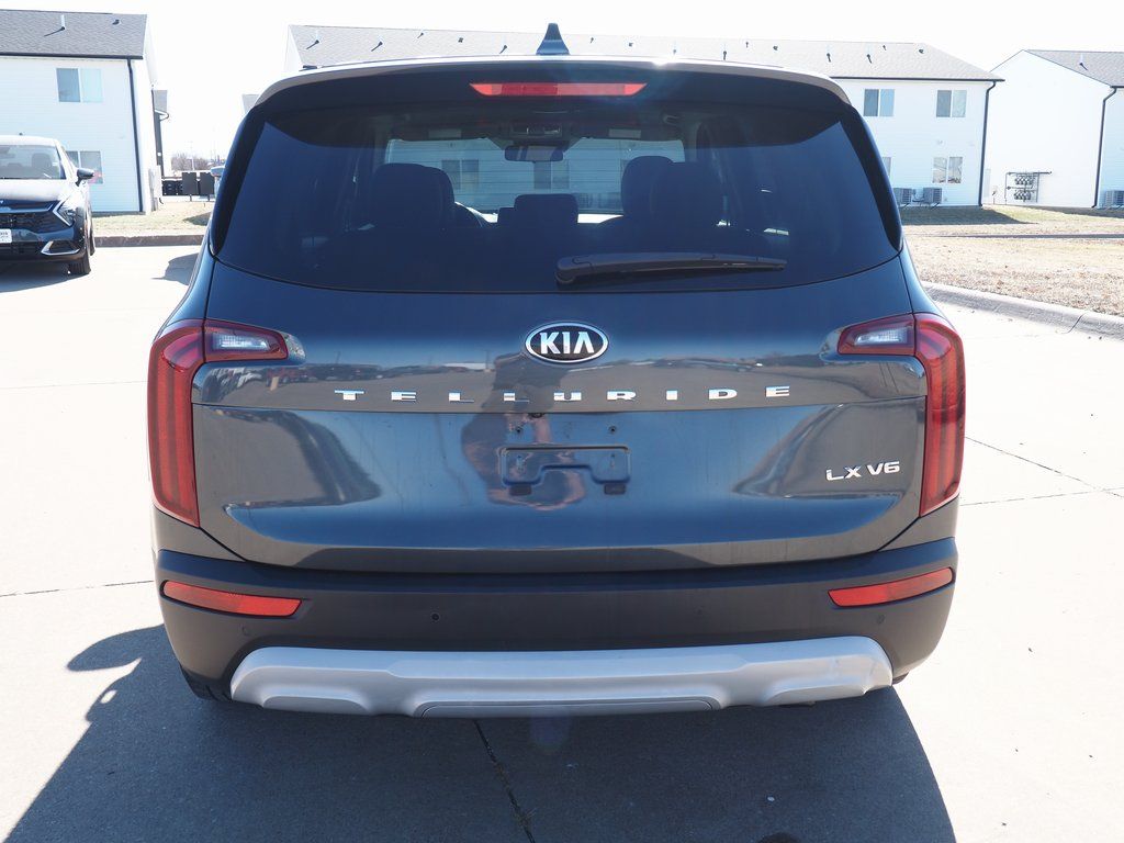 2020 Kia Telluride LX Gravity Gray 4D Sport Utility 3.8L V6 DGI DOHC Dual CVVT 8-Speed Automatic FWD LX This vehicle comes well equipped with 3.648 Axle Ratio, 3rd row seats: split-bench, 4-Wheel Disc Brakes, 6 Speakers, ABS brakes, Air Conditioning, Alloy wheels, AM/FM radio: SiriusXM, Apple CarPlay & Android Auto, Brake assist, Bumpers: body-color, Carpeted Floor Mats, Delay-off headlights, Driver door bin, Driver vanity mirror, Dual front impact airbags, Dual front side impact airbags, Electronic Stability Control, Emergency communication system: 911 Connect, Four wheel independent suspension, Front anti-roll bar, Front Bucket Seats, Front Center Armrest, Front reading lights, Fully automatic headlights, Heated door mirrors, Illuminated entry, Knee airbag, Leather steering wheel, Low tire pressure warning, Occupant sensing airbag, Outside temperature display, Overhead airbag, Overhead console, Panic alarm, Passenger door bin, Passenger vanity mirror, Power door mirrors, Power steering, Power windows, Radio data system, Radio: AM/FM/MP3/SiriusXM Audio System, Rear air conditioning, Rear anti-roll bar, Rear reading lights, Rear seat center armrest, Rear window defroster, Rear window wiper, Reclining 3rd row seat, Remote keyless entry, Security system, SOFINO Artificial Leather Upholstery, Speed control, Speed-sensing steering, Split folding rear seat, Spoiler, Steering wheel mounted audio controls, Tachometer, Telescoping steering wheel, Tilt steering wheel, Traction control, Trip computer, Turn signal indicator mirrors, Variably intermittent wipers, and Wheels: 7.5" x 18" Painted Alloy.