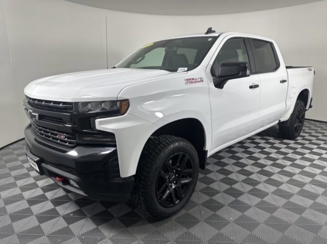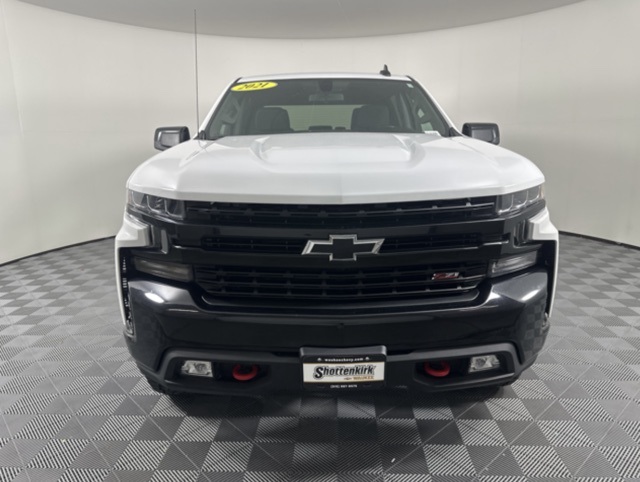 CARFAX One-Owner. Summit White 2021 Chevrolet Silverado 1500 LT Trail Boss 4D Crew Cab EcoTec3 5.3L V8 4WD 10-Speed Automatic 10-Way Power Driver Seat w/Lumbar, 12-Volt Rear Auxiliary Power Outlet, 170 Amp Alternator, 2 USB Ports (First Row), 4.2" Diagonal Color Display Driver Info Center, 4G LTE Wi-Fi Hot Spot Capable, 6-Speaker Audio System, All-Weather Floor Liner (LPO) (AAK), Auto-Locking Rear Differential, Auxiliary External Transmission Oil Cooler, Bed Protection Package, Bluetooth® For Phone, Chevrolet Connected Access Capable, Chevytec Spray-On Black Bedliner, Cloth Rear Seat w/Storage Package, Color-Keyed Carpeting Floor Covering, Compass, Convenience Package w/Buckets Seats, Deep-Tinted Glass, Dual Exhaust w/Polished Outlets, Dual-Zone Automatic Climate Control, Electric Rear-Window Defogger, Electrical Lock Control Steering Column, Electronic Cruise Control, EZ Lift Power Lock & Release Tailgate, Floor Mounted Center Console, Front LED Fog Lamps, Heated Driver & Front Outboard Passenger Seats, Heated Steering Wheel, Heavy-Duty Air Filter, High Gloss Black Grille, High Gloss Black Mirror Caps, Hill Descent Control, Hitch Guidance, Keyless Open & Start, Leather Wrapped Steering Wheel, LED Cargo Area Lighting, LED Reflector Headlamps, Manual Tilt/Telescoping Steering Column, OnStar & Chevrolet Connected Services Capable, Performance Red Recovery Hooks, Power Door Locks, Power Front Windows w/Driver Express Up/Down, Power Front Windows w/Passenger Express Down, Power Rear Windows w/Express Down, Preferred Equipment Group 2LT, Rear Dual USB Charging-Only Ports, Rear Vision Camera, Rear Wheelhouse Liners, Remote Vehicle Starter System, SiriusXM Radio, Standard Tailgate, Steering Wheel Audio Controls, Suspension Package, Theft Deterrent System (Unauthorized Entry), Trailering Package. Clean CARFAX.