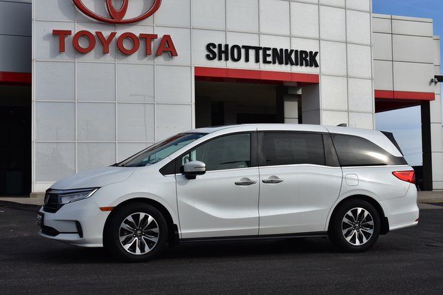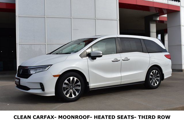 2022 Honda Odyssey White EX-L 3.5L V6 SOHC i-VTEC 24V 10-Speed Automatic FWD Clean Carfax, Sunroof/Moonroof, Leather, Backup Camera, Odyssey EX-L, 10-Speed Automatic, FWD, White, Beige w/Leather Seat Trim, 3rd row seats: split-bench, 7 Speakers, ABS brakes, Air Conditioning, Alloy wheels, AM/FM radio: SiriusXM, Automatic temperature control, Bumpers: body-color, Driver door bin, Driver vanity mirror, Driver's Seat Mounted Armrest, Front Bucket Seats, Front dual zone A/C, Front reading lights, Fully automatic headlights, Heated door mirrors, Heated Front Bucket Seats, Heated front seats, Illuminated entry, Lane departure: Lane Keeping Assist System (LKAS) active, Leather Seat Trim, Leather steering wheel, Low tire pressure warning, Memory seat, Occupant sensing airbag, Outside temperature display, Overhead console, Panic alarm, Passenger door bin, Passenger seat mounted armrest, Passenger vanity mirror, Power door mirrors, Power driver seat, Power Liftgate, Power moonroof, Power passenger seat, Power steering, Power windows, Radio data system, Rear air conditioning, Rear seat center armrest, Rear window defroster, Rear window wiper, Reclining 3rd row seat, Remote keyless entry, Speed control, Split folding rear seat, Spoiler, Steering wheel mounted audio controls, Telescoping steering wheel, Tilt steering wheel, Traction control, Turn signal indicator mirrors, Variably intermittent wipers.