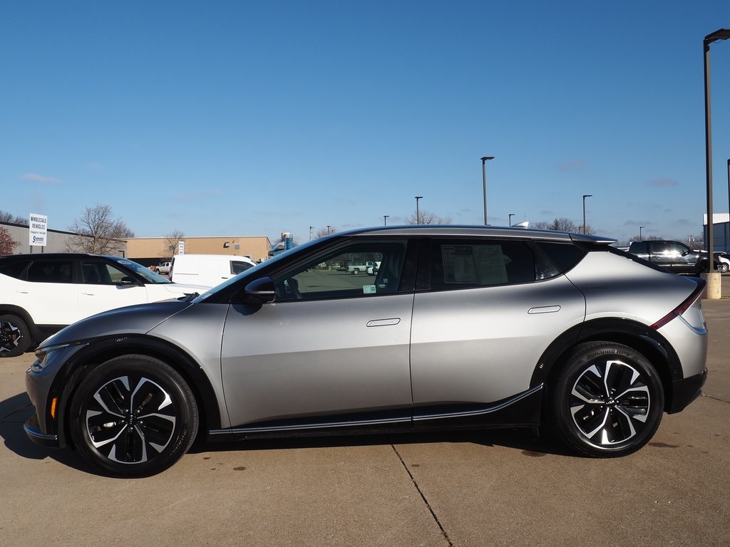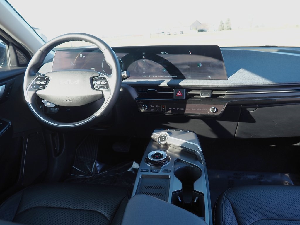 2022 Kia EV6 Wind Steel Gray 4D Sport Utility Electric Motor 1-Speed Automatic AWD Wind This vehicle comes well equipped with Wind Technology Package (Blind-Spot View Monitor, Remote Smart Parking Assist, Reverse Parking Collision-Avoidance Assist, and Surround View Monitor), 14 Speakers, 4-Wheel Disc Brakes, ABS brakes, Air Conditioning, Alloy wheels, AM/FM radio: SiriusXM, Apple CarPlay & Android Auto, Auto High-beam Headlights, Auto-dimming Rear-View mirror, Automatic temperature control, Axle Ratio: 10.650, Brake assist, Bumpers: body-color, Carpeted Floor Mats, Delay-off headlights, Driver door bin, Driver vanity mirror, Dual front impact airbags, Dual front side impact airbags, EC Mirror w/HomeLink, Electronic Stability Control, Emergency communication system, Four wheel independent suspension, Front anti-roll bar, Front Bucket Seats, Front Center Armrest, Front dual zone A/C, Front reading lights, Fully automatic headlights, Heated & Ventilated Front Bucket Seats, Heated door mirrors, Heated front seats, Heated rear seats, Heated steering wheel, Illuminated entry, Knee airbag, Low tire pressure warning, Memory seat, Navigation system: AVN 5.0 Navigation System, Occupant sensing airbag, Outside temperature display, Overhead airbag, Overhead console, Panic alarm, Passenger door bin, Passenger vanity mirror, Power door mirrors, Power driver seat, Power Liftgate, Power passenger seat, Power steering, Power windows, Radio: Meridian Premium Audio System, Rain sensing wipers, Rear anti-roll bar, Rear seat center armrest, Rear window defroster, Remote keyless entry, Security system, Smart Key w/ Push Button and Remote Start, Speed control, Speed-sensing steering, Split folding rear seat, Spoiler, Steering wheel mounted audio controls, Telescoping steering wheel, Tilt steering wheel, Traction control, Trip computer, Turn signal indicator mirrors, Variably intermittent wipers, Vegan Leather Seat Trim, Ventilated front seats, and Wheels: 7.5J x 19" Black Painted Alloy.