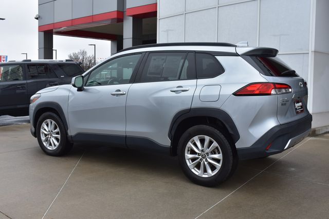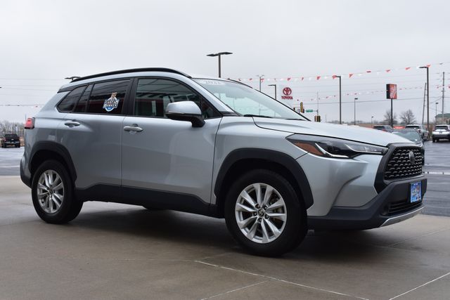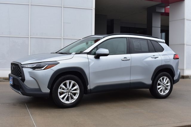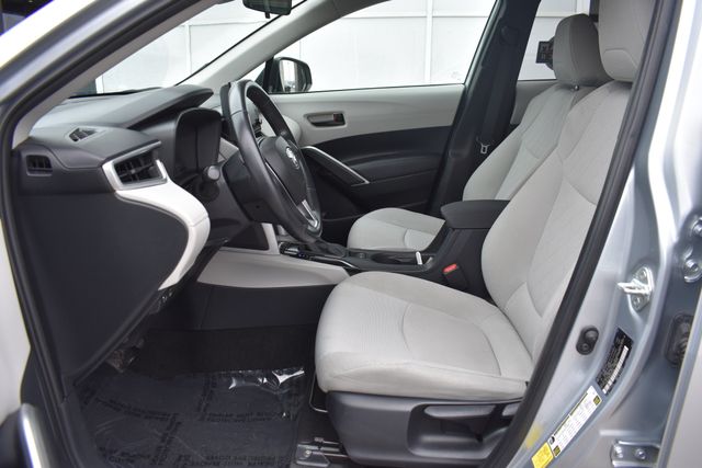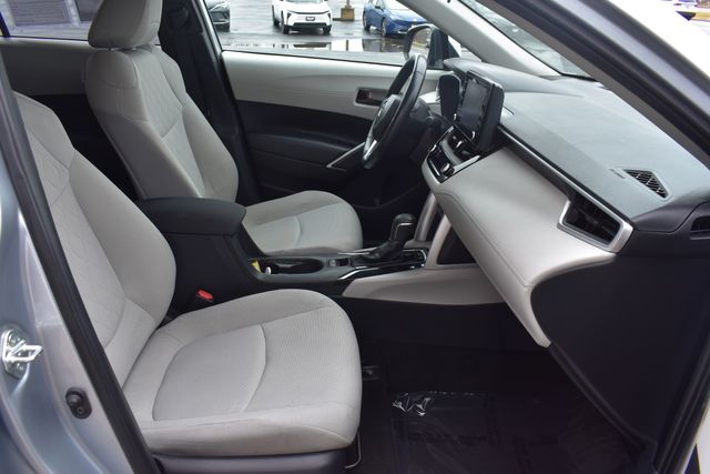 2022 Toyota Corolla Cross Silver LE 2.0L I4 PDI DOHC 16V LEV3-SULEV30 169hp CVT FWD One Owner, Backup Camera, Corolla Cross LE, CVT, FWD, Silver, Gray Cloth, 6 Speakers, ABS brakes, Air Conditioning, Alloy wheels, AM/FM radio: SiriusXM, Automatic temperature control, Bumpers: body-color, Driver door bin, Driver vanity mirror, Electronic Stability Control, Exterior Parking Camera Rear, Fabric Seat Trim, Front Bucket Seats, Front Center Armrest, Front reading lights, Fully automatic headlights, Heated door mirrors, Illuminated entry, Leather steering wheel, Low tire pressure warning, Occupant sensing airbag, Outside temperature display, Panic alarm, Passenger door bin, Passenger vanity mirror, Power door mirrors, Power steering, Power windows, Radio data system, Rear window defroster, Rear window wiper, Remote keyless entry, Roof rack: rails only, Speed control, Split folding rear seat, Spoiler, Steering wheel mounted audio controls, Tilt steering wheel, Traction control, Turn signal indicator mirrors.