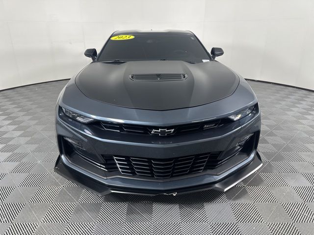 Shadow Gray Metallic 2023 Chevrolet Camaro SS w/Track Performance Package 2D Coupe 6.2L V8 RWD 10-Speed Automatic Black Front Splitter, Dual Mode Exhaust, Electronic Limited Slip Differential (eLSD), Head-Up Display, Leather-Trimmed Seat Trim w/Sueded Inserts, Magnetic Ride Control, Performance Suspension, RECARO Performance Front Bucket Seats, Red Brembo Brakes, Satin Black Hood Wrap, Satin Black Rear Blade Spoiler, SS 1LE Track Performance Package, Sueded Flat-Bottom 3-Spoke Steering Wheel, Sueded Microfiber-Wrapped Shift Knob, Wheels: 20" x 10" Fr & 20" x 11" Rr Satin Graphite. Clean CARFAX.