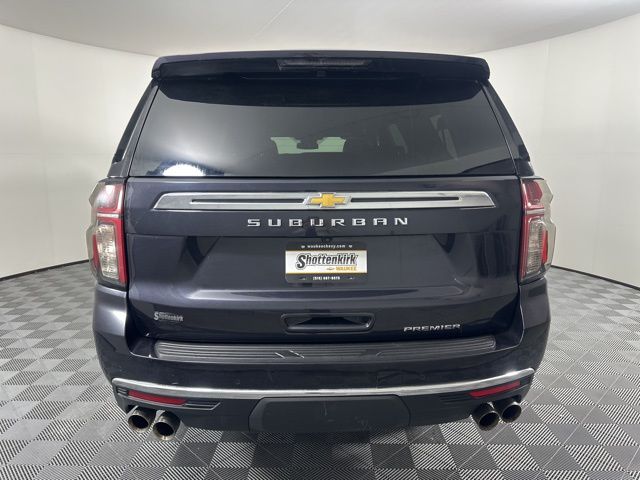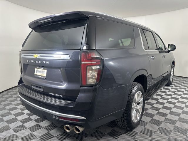 CARFAX One-Owner. Dark Ash Metallic 2023 Chevrolet Suburban Premier 4D Sport Utility EcoTec3 5.3L V8 4WD 10-Speed Automatic with Overdrive 1st & 2nd Row Color-Keyed Carpeted Floor Mats, 2-Speed Active Electronic AutoTrac Transfer Case, 3rd Row 60/40 Power-Folding Split-Bench, 3RD ROW SEATING, Auto-Dimming Inside Rear-View Mirror, Bose 10-Speaker Surround w/CenterPoint, Bright Front & Rear Door Sill Plates, Chrome Door Handles w/Body-Color Strip, Chrome Mirror Caps, Color-Keyed Carpeting Floor Covering, Driver & Front Outboard Passenger Airbags, Dual Exhaust System, Enhanced Driver Information Center, Floor Console, Hands-Free Rear Power Programmable Liftgate, Heated & Ventilated Driver & Front Passenger Seats, Heated 2nd Row Outboard Seats, Heated Driver & Front Passenger Seats, Heated Steering Wheel, Hill Descent Control, Infotainment Display, Lane Change Alert w/Side Blind Zone Alert, LED Daytime Running Lamps, Memory Settings, Navigation System, Outside Heated Power-Adjustable Mirrors, Power Release 2nd Row Bucket Seats, Power Tilt & Telescopic Steering Column, Preferred Equipment Group 1LZ, Rear Cross Traffic Alert, Remote Start, Safety Alert Seat, SiriusXM Radio w/360L, Universal Home Remote, Wireless Charging, Wrapped Steering Wheel. Clean CARFAX.