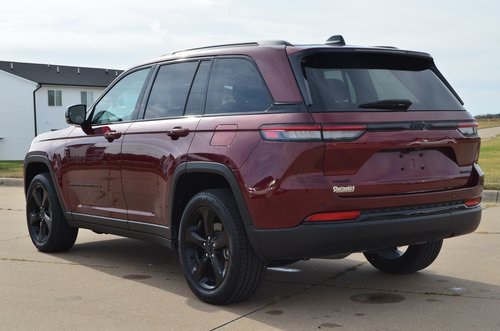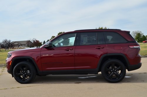 2023 Jeep Grand Cherokee Limited Velvet Red Pearlcoat 4D Sport Utility 3.6L V6 24V VVT 8-Speed Automatic 4WD Limited This vehicle comes well equipped with Black Appearance Package (Gloss Black Exterior Accents, Molded In Color Black/Gloss Black Roof Rails, and Wheels: 20" x 8.5" Gloss Black Painted Aluminum), Quick Order Package 23E, Trailer Tow Prep Group (B) (DISC) (220 Amp Alternator, Automatic Headlamp Levelling System, Heavy-Duty Engine Cooling, Rear Load Levelling Suspension, and Trailer Hitch Zoom), 3.45 Rear Axle Ratio, 4-Wheel Disc Brakes, 6 Speakers, ABS brakes, Active Noise Control System, Air Conditioning, Alloy wheels, AM/FM radio: SiriusXM with 360L, Anti-whiplash front head restraints, Audio memory, Auto High-beam Headlights, Automatic temperature control, Brake assist, Bumpers: body-color, Capri Leatherette Seats, Compass, Delay-off headlights, Driver door bin, Driver vanity mirror, Dual front impact airbags, Dual front side impact airbags, Dual-Pane Panoramic Sunroof, Electronic Stability Control, Emergency communication system, Four wheel independent suspension, Front anti-roll bar, Front Bucket Seats, Front Center Armrest w/Storage, Front dual zone A/C, Front fog lights, Front License Plate Bracket, Front reading lights, Fully automatic headlights, Garage door transmitter, Heated door mirrors, Heated front seats, Heated rear seats, Heated steering wheel, Illuminated entry, Knee airbag, Low tire pressure warning, Memory seat, Navigation System, Normal Duty Suspension, Occupant sensing airbag, Outside temperature display, Overhead airbag, Overhead console, Panic alarm, ParkView Rear Back-Up Camera, Passenger door bin, Passenger vanity mirror, Power door mirrors, Power driver seat, Power Liftgate, Power passenger seat, Power steering, Power windows, Radio data system, Radio: Uconnect 5 Nav w/10.1" Display, Rear anti-roll bar, Rear reading lights, Rear window defroster, Rear window wiper, Remote keyless entry, Security system, Speed control, Speed-Sensitive Wipers, Split folding rear seat, Spoiler, Steering wheel mounted audio controls, Tachometer, Telescoping steering wheel, Tilt steering wheel, Traction control, Trip computer, Turn signal indicator mirrors, Variably intermittent wipers, Voltmeter, and Wheels: 18" x 8" Fully Painted Aluminum.
