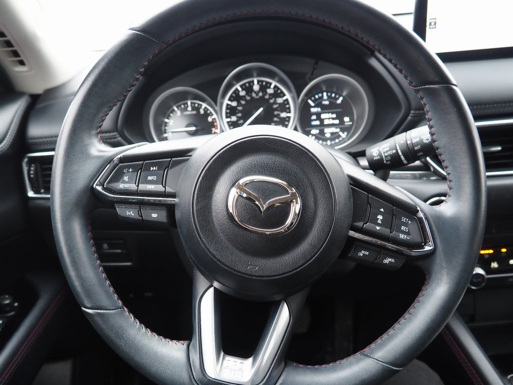 2023 Mazda CX-5 2.5 S Carbon Edition Polymetal Gray 4D Sport Utility SKYACTIV® 2.5L 4-Cylinder DOHC 16V 6-Speed Automatic AWD 2.5 S Carbon Edition This vehicle comes well equipped with 10 Speakers, 4-Wheel Disc Brakes, 4.624 Axle Ratio, ABS brakes, Air Conditioning, All-Weather Floor Mats, Alloy wheels, AM/FM radio, AppLink/Apple CarPlay and Android Auto, Auto High-beam Headlights, Auto-dimming Rear-View mirror, Automatic temperature control, Brake assist, Bumpers: body-color, Carbon Edition License Plate Frame, Delay-off headlights, Driver door bin, Driver vanity mirror, Dual front impact airbags, Dual front side impact airbags, E911 Automatic Emergency Notification, Electronic Stability Control, Emergency communication system: MAZDA CONNECT, Exterior Parking Camera Rear, Four wheel independent suspension, Front anti-roll bar, Front Bucket Seats, Front Center Armrest w/Storage, Front dual zone A/C, Front reading lights, Fully automatic headlights, Garage door transmitter: HomeLink, Heated Front Bucket Seats, Heated front seats, Illuminated entry, Infotainment System Voice Command, Leather Seat Trim, Leather Shift Knob, Low tire pressure warning, Memory seat, Multifunction Commander Control, Occupant sensing airbag, Outside temperature display, Overhead airbag, Overhead console, Pandora, Panic alarm, Passenger door bin, Passenger vanity mirror, Power door mirrors, Power driver seat, Power Liftgate, Power moonroof, Power passenger seat, Power steering, Power windows, Radio Broadcast Data System Program Information, Radio data system, Radio: AM/FM/HD Audio System, Rain sensing wipers, Rear anti-roll bar, Rear reading lights, Rear seat center armrest, Rear window defroster, Rear window wiper, Remote keyless entry, SMS Text Msg Audio Delivery & Reply, Speed control, Speed-sensing steering, Split folding rear seat, Spoiler, Steering wheel mounted audio controls, Tachometer, Telescoping steering wheel, Tilt steering wheel, Traction control, Trip computer, Turn signal indicator mirrors, Variably intermittent wipers, and Wheels: 19" x 7J Aluminum Alloy.