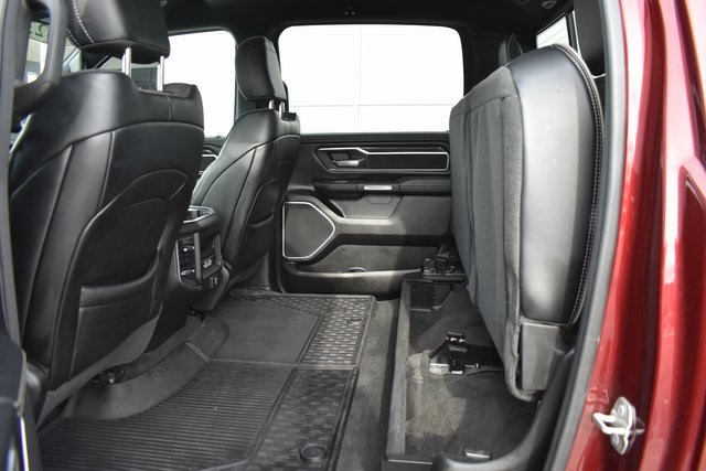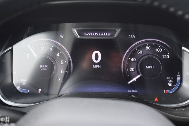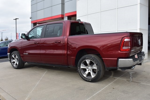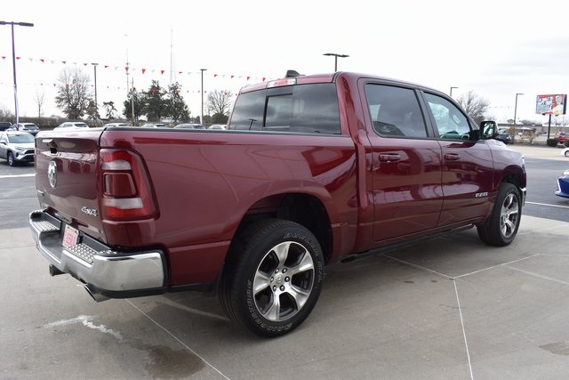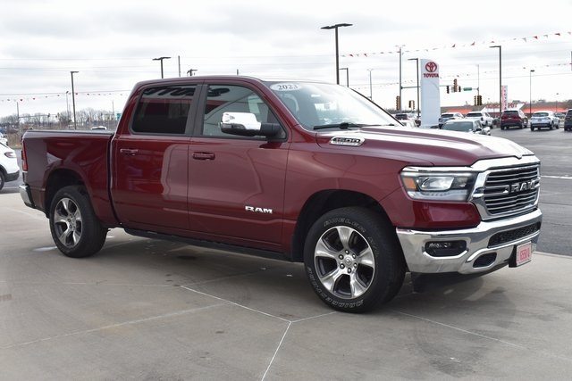 2023 Ram 1500 Delmonico Red Pearlcoat Laramie HEMI 5.7L V8 Multi Displacement VVT eTorque 8-Speed Automatic 4WD Fixed Running Boards, Towing/Camper Pkg, Clean Carfax, One Owner, Navigation, Leather, Local Trade, Backup Camera, 1500 Laramie, 8-Speed Automatic, 4WD, Delmonico Red Pearlcoat, Black Leather, 10 Speakers, ABS brakes, Adjustable pedals, Air Conditioning, Alloy wheels, Automatic temperature control, Compass, Driver door bin, Driver vanity mirror, Front Center Armrest w/Storage, Front Door Accent Lighting, Front dual zone A/C, Front reading lights, Front Seat Back Map Pockets, Fully automatic headlights, Heated Front Seats, Illuminated entry, Leather steering wheel, Low tire pressure warning, Navigation System, Outside temperature display, Overhead console, Panic alarm, ParkView Rear Back-Up Camera, Passenger door bin, Passenger vanity mirror, Pedal memory, Power door mirrors, Power driver seat, Power steering, Power windows, Radio data system, Rear 60/40 Folding Seat, Rear seat center armrest, Rear Window Defroster, Speed control, Steering wheel mounted audio controls, Telescoping steering wheel, Tilt steering wheel, Traction control, Turn signal indicator mirrors, Ventilated Front Seats.