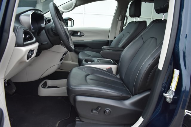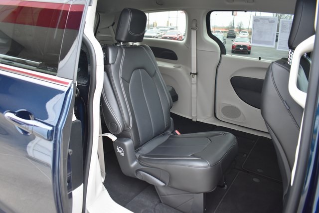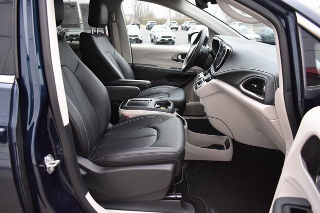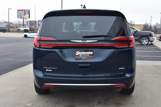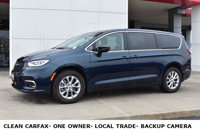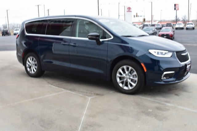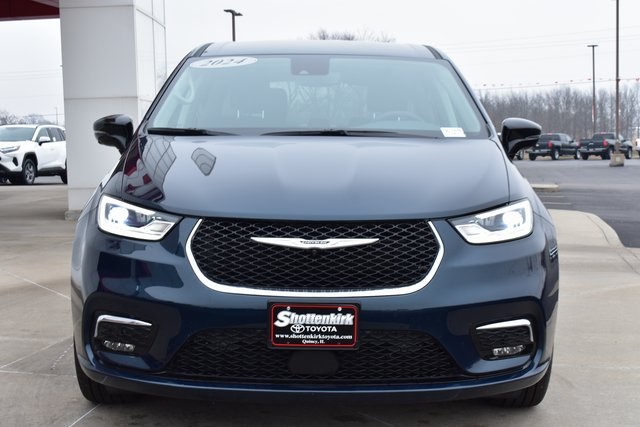 2024 Chrysler Pacifica Fathom Blue Pearlcoat Touring L 3.6L V6 24V VVT 9-Speed 948TE Automatic AWD Clean Carfax, One Owner, Local Trade, Backup Camera, Pacifica Touring L, 9-Speed 948TE Automatic, AWD, Fathom Blue Pearlcoat, Black/Alloy/Black Artificial Leather, 3rd row seats: split-bench, 6 Speakers, ABS brakes, Air Conditioning, Alloy wheels, AM/FM radio: SiriusXM, Automatic temperature control, Black Seats, Bumpers: body-color, Compass, Driver door bin, Driver vanity mirror, Driver's Seat Mounted Armrest, Front Bucket Seats, Front dual zone A/C, Front reading lights, Fully automatic headlights, GPS Antenna Input, Heated door mirrors, Heated front seats, Heated steering wheel, Illuminated entry, Low tire pressure warning, Memory seat, Occupant sensing airbag, Outside temperature display, Panic alarm, ParkView Rear Back-Up Camera, Passenger door bin, Passenger seat mounted armrest, Passenger vanity mirror, Power door mirrors, Power driver seat, Power Liftgate, Power steering, Power windows, Radio data system, Rear air conditioning, Rear window defroster, Rear window wiper, Reclining 3rd row seat, Remote keyless entry, Security system, Speed control, Split folding rear seat, Spoiler, Steering wheel mounted audio controls, Tilt steering wheel, Traction control, Turn signal indicator mirrors.