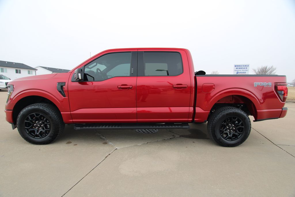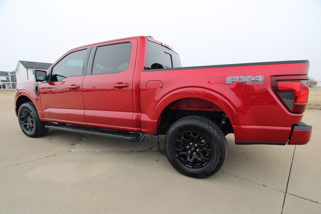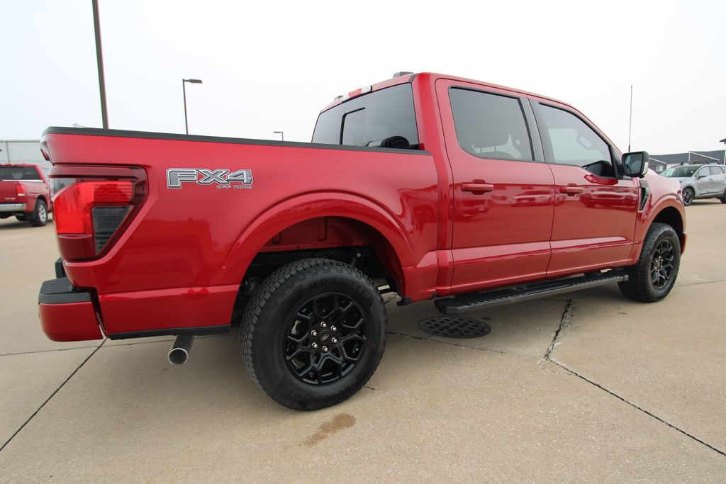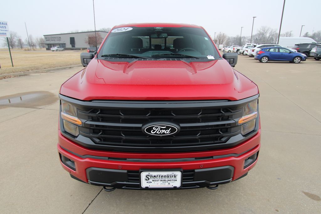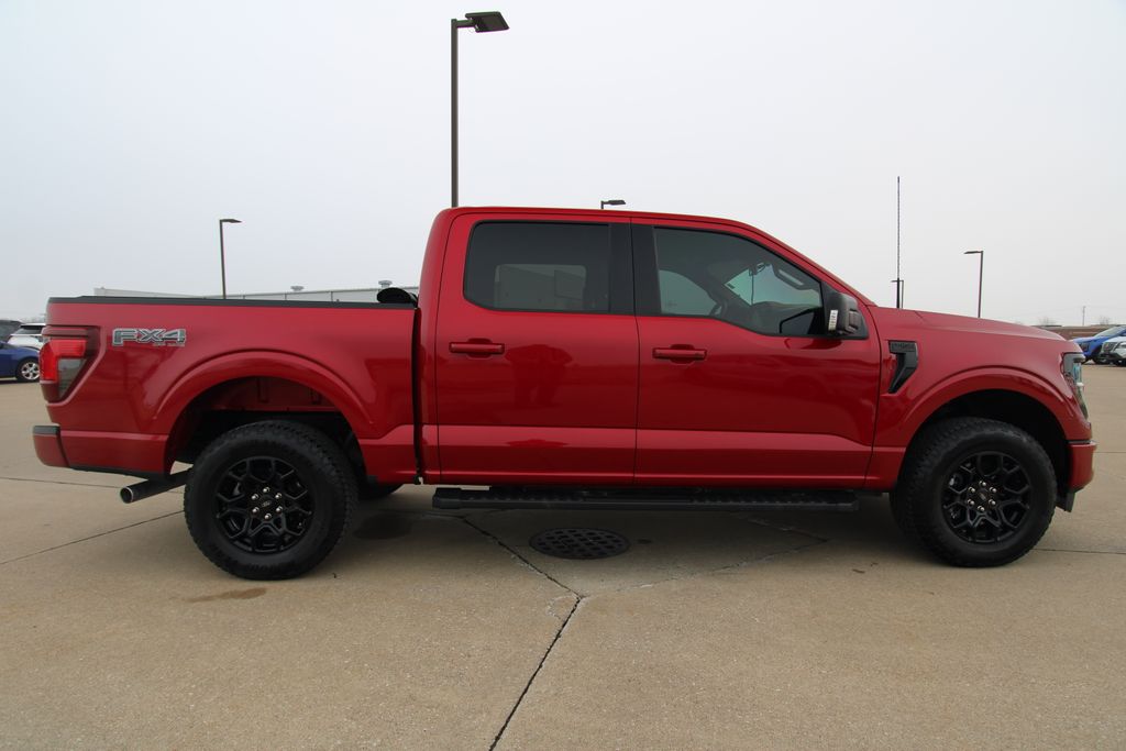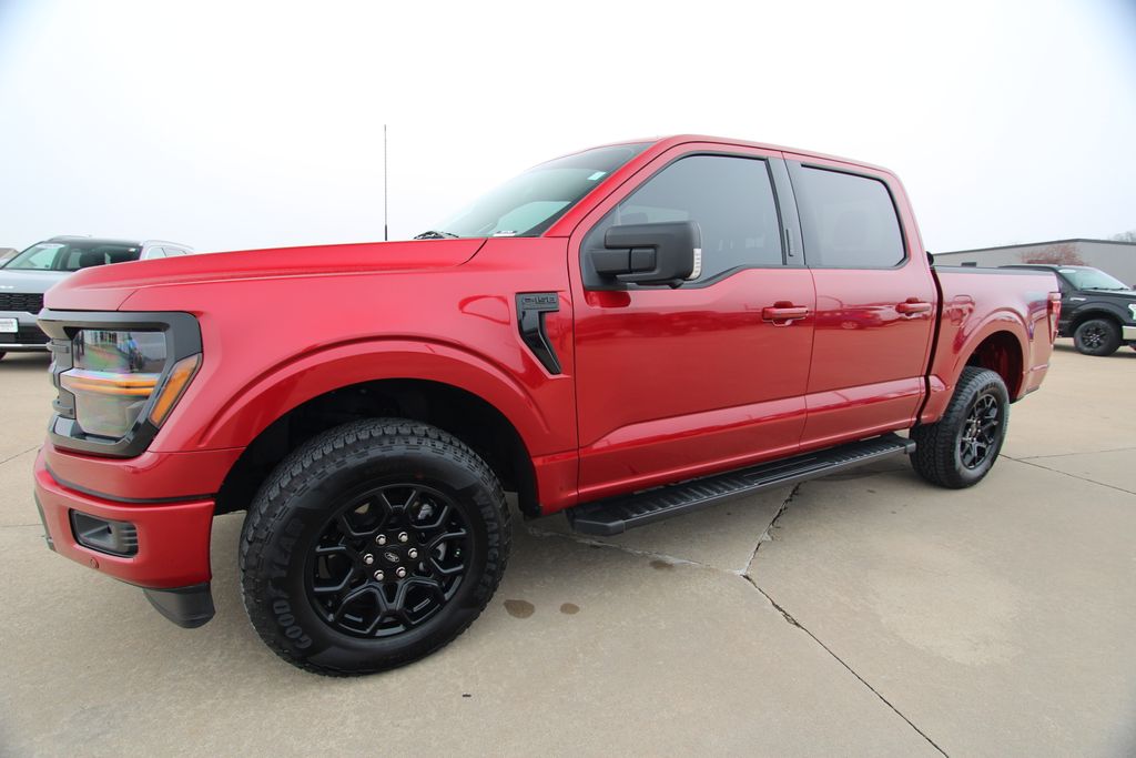 2024 Ford F-150 XLT Red Metallic 4D SuperCrew 5.0L V8 10-Speed Automatic 4WD XLT This vehicle comes well equipped with Equipment Group 302A Mid, FX4 Off-Road Package, 4-Wheel Disc Brakes, 6 Speakers, ABS brakes, Air Conditioning, Alloy wheels, AM/FM radio: SiriusXM with 360L, Auto High-beam Headlights, Auto-dimming Rear-View mirror, Automatic temperature control, Brake assist, Bumpers: chrome, Chrome wheels, Cloth 40/20/40 Front Seat, Compass, Delay-off headlights, Driver door bin, Driver vanity mirror, Dual front impact airbags, Dual front side impact airbags, Electronic Stability Control, Emergency communication system: SYNC 4 911 Assist, Front anti-roll bar, Front Center Armrest w/Storage, Front dual zone A/C, Front fog lights, Front License Plate Bracket, Front reading lights, Front wheel independent suspension, Fully automatic headlights, Heated door mirrors, Illuminated entry, Low tire pressure warning, Navigation system: Connected Navigation, Occupant sensing airbag, Outside temperature display, Overhead airbag, Overhead console, Panic alarm, Passenger door bin, Passenger vanity mirror, Power door mirrors, Power driver seat, Power steering, Power windows, Radio data system, Radio: AM/FM SiriusXM w/360L, Rear reading lights, Rear step bumper, Rear window defroster, Remote keyless entry, Security system, Speed control, Split folding rear seat, Steering wheel mounted audio controls, SYNC 4 w/Enhanced Voice Recognition, Tachometer, Telescoping steering wheel, Tilt steering wheel, Traction control, Trip computer, Variably intermittent wipers, Voltmeter, and Wheels: 18" Chrome-Like PVD.