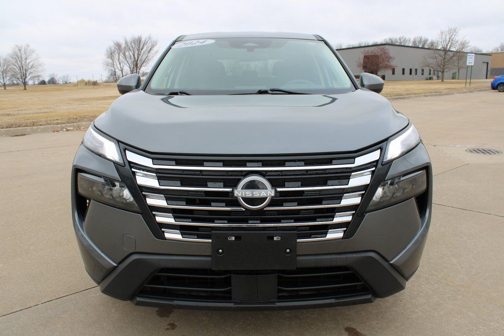 2024 Nissan Rogue SV Gun Metallic 4D Sport Utility 1.5L DOHC CVT with Xtronic AWD SV This vehicle comes well equipped with 4-Wheel Disc Brakes, 5.676 Axle Ratio, 6 Speakers, ABS brakes, Air Conditioning, Alloy wheels, AM/FM radio: SiriusXM, Auto High-beam Headlights, Automatic temperature control, Brake assist, Bumpers: body-color, Cloth Seat Trim w/Patterned Inserts, Delay-off headlights, Driver door bin, Driver vanity mirror, Dual front impact airbags, Dual front side impact airbags, Electronic Stability Control, Emergency communication system: NissanConnect Services, First Aid Kit, Floor Mats w/1-Piece Cargo Area Protector, Four wheel independent suspension, Front anti-roll bar, Front Bucket Seats, Front Center Armrest, Front dual zone A/C, Front reading lights, Fully automatic headlights, Heated door mirrors, Illuminated entry, Knee airbag, Low tire pressure warning, NissanConnect featuring Apple CarPlay and Android Auto, Occupant sensing airbag, Outside temperature display, Overhead airbag, Overhead console, Panic alarm, Passenger door bin, Passenger vanity mirror, Power door mirrors, Power driver seat, Power Liftgate, Power steering, Power windows, Radio data system, Radio: AM/FM NissanConnect, Rear anti-roll bar, Rear Parking Sensors, Rear seat center armrest, Rear side impact airbag, Rear window defroster, Rear window wiper, Remote keyless entry, Speed control, Speed-Sensitive Wipers, Split folding rear seat, Spoiler, Steering wheel mounted audio controls, Tachometer, Telescoping steering wheel, Tilt steering wheel, Traction control, Trip computer, Variably intermittent wipers, and Wheels: 18" Dark Painted Machine Finished Alloy.
