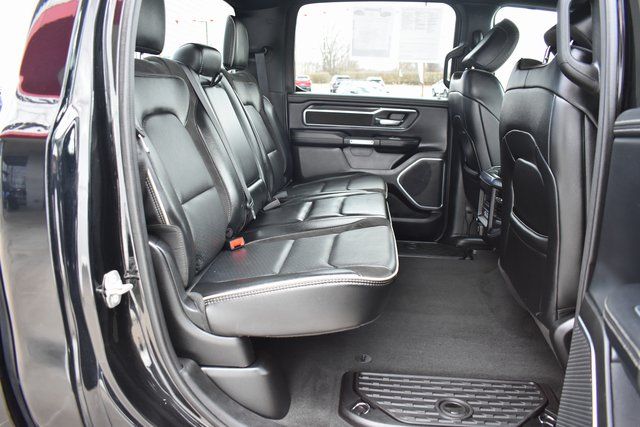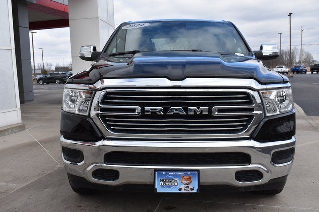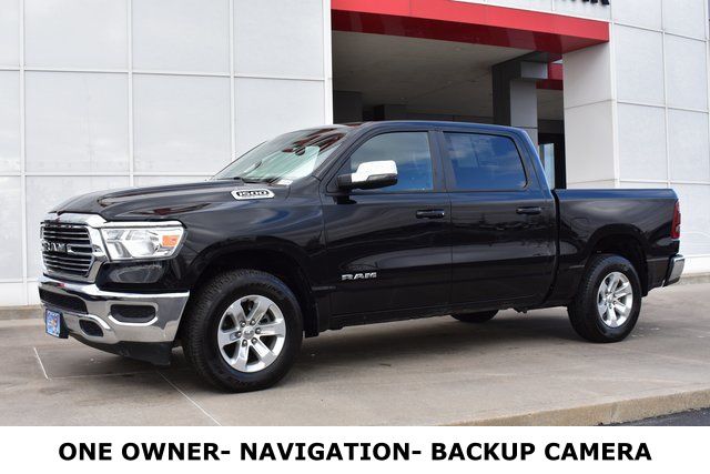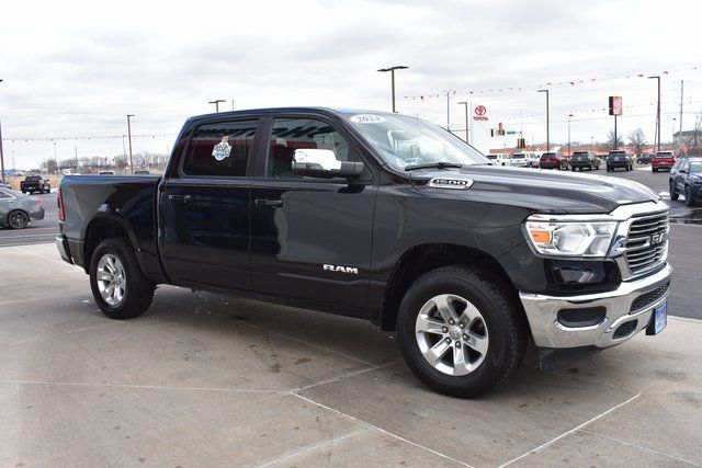 2024 Ram 1500 Diamond Black Crystal Pearlcoat Laramie HEMI 5.7L V8 Multi Displacement VVT eTorque 8-Speed Automatic 4WD One Owner, Navigation, Leather, Backup Camera, 1500 Laramie, 8-Speed Automatic, 4WD, Diamond Black Crystal Pearlcoat, Black Leather, 10 Speakers, ABS brakes, Air Conditioning, Alloy wheels, AM/FM radio: SiriusXM with 360L, Auto-dimming door mirrors, Automatic temperature control, Bumpers: chrome, Compass, Driver door bin, Driver Seat Memory, Driver vanity mirror, Exterior Mirrors w/Memory, Front Center Armrest w/Storage, Front dual zone A/C, Front reading lights, Fully automatic headlights, HD Radio, Heated door mirrors, Heated front seats, Heated Steering Wheel, Illuminated entry, Leather steering wheel, Low tire pressure warning, Memory seat, Navigation System, Occupant sensing airbag, Outside temperature display, Panic alarm, ParkView Rear Back-Up Camera, Passenger door bin, Passenger vanity mirror, Power 2-Way Driver Lumbar Adjust, Power 2-Way Passenger Lumbar Adjust, Power 8-Way Driver & Passenger Seats, Power door mirrors, Power driver seat, Power passenger seat, Power steering, Power windows, Power-Folding Mirrors, Radio data system, RAM Grille Badge - Chrome, Rear 60/40 Folding Seat, Rear seat center armrest, Rear step bumper, Speed control, Split folding rear seat, Steering wheel mounted audio controls, Telescoping steering wheel, Tilt steering wheel, Traction control, Trip computer, Turn signal indicator mirrors, Ventilated front seats.