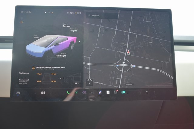 2024 Tesla Cybertruck Silver Electric Motor 1-Speed Automatic AWD Towing/Camper Pkg, Clean Carfax, One Owner, Navigation, Sunroof/Moonroof, Leather, Local Trade, Backup Camera, 1-Speed Automatic, AWD, Silver, Black Leather, 15 Speakers, ABS brakes, Adaptive suspension, Air Conditioning, Alloy wheels, Audio memory, Auto High-beam Headlights, Automatic temperature control, Compass, Driver door bin, Driver vanity mirror, Exterior Parking Camera Rear, Front Center Armrest, Front dual zone A/C, Illuminated entry, Lane Departure Warning System, Navigation System, Outside temperature display, Passenger door bin, Passenger vanity mirror, Power door mirrors, Power driver seat, Power passenger seat, Power steering, Power windows, Radio data system, Rear air conditioning, Rear audio controls, Rear seat center armrest, Rear step bumper, Security system, Speed control, Speed-sensing steering, Steering wheel memory, Steering wheel mounted audio controls, Telescoping steering wheel, Traction control.