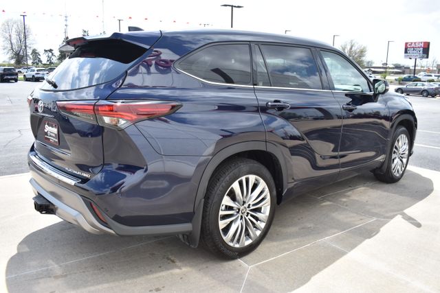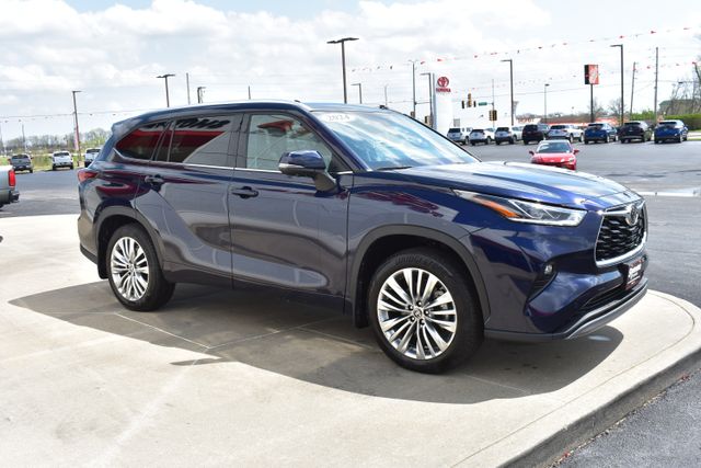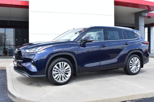 2024 Toyota Highlander Blue Platinum 2.4L I4 PDI Turbocharged DOHC 16V LEV3-SULEV30 265hp 8-Speed Automatic AWD Towing/Camper Pkg, Clean Carfax, One Owner, Navigation, Sunroof/Moonroof, Leather, Local Trade, Backup Camera, Highlander Platinum, 8-Speed Automatic, AWD, Blue, Black w/Leather Seat Trim, 11 Speakers, 3rd row seats: split-bench, ABS brakes, Air Conditioning, Alloy wheels, AM/FM radio: SiriusXM, Automatic temperature control, Bumpers: body-color, Driver door bin, Driver vanity mirror, Exterior Parking Camera Rear, Front Bucket Seats, Front Center Armrest, Front dual zone A/C, Front reading lights, Fully automatic headlights, Heads-Up Display, Heated door mirrors, Heated front seats, Heated rear seats, Heated steering wheel, Heated/Ventilated Front Bucket Seats, Illuminated entry, Leather Seat Trim, Leather Shift Knob, Leather steering wheel, Low tire pressure warning, Memory seat, Navigation system: Drive Connect Cloud Navigation (1-year trial subscription), Outside temperature display, Overhead console, Panoramic Moonroof, Passenger door bin, Passenger vanity mirror, Power door mirrors, Power driver seat, Power Liftgate, Power moonroof, Power passenger seat, Power steering, Power windows, Radio: 12.3" Toyota Audio Multimedia w/JBL Premium, Rear air conditioning, Rear window defroster, Rear window wiper, Reclining 3rd row seat, Remote keyless entry, Security system, Speed control, Split folding rear seat, Spoiler, Steering wheel mounted audio controls, Telescoping steering wheel, Tilt steering wheel, Traction control, Turn signal indicator mirrors, Ventilated front seats.