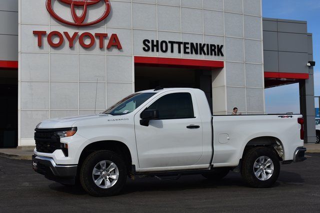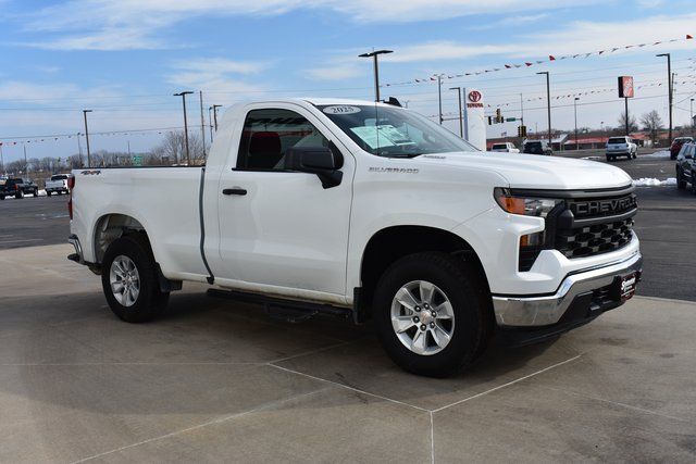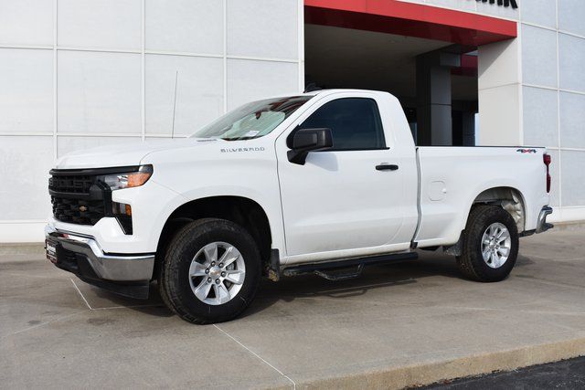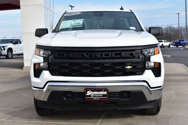 2025 Chevrolet Silverado 1500 Summit White WT 2.7L I4 Turbocharged DOHC 16V LEV3-SULEV30 310hp 8-Speed Automatic 4WD Fixed Running Boards, Towing/Camper Pkg, Clean Carfax, Backup Camera, Silverado 1500 WT, 2D Standard Cab, 8-Speed Automatic, 4WD, Summit White, Black Cloth, 2 Speakers, 4-Way Manual Driver Seat Adjuster, ABS brakes, Air Conditioning, Bluetooth® For Phone, Compass, Driver door bin, Front Center Armrest w/Storage, Front Chrome Bumper, Front reading lights, Fully automatic headlights, Heated door mirrors, Illuminated entry, Low tire pressure warning, Manual Tailgate Function w/No EZ Lift, Outside temperature display, Overhead console, Panic alarm, Passenger door bin, Passenger vanity mirror, Power door mirrors, Power Front Windows w/Driver Express Up/Down, Power Front Windows w/Passenger Express Down, Power steering, Power windows, Radio data system, Rear step bumper, Remote Keyless Entry, Speed control, Standard Tailgate, Tilt steering wheel, Tire Pressure Monitoring System, Traction control, Variably intermittent wipers.