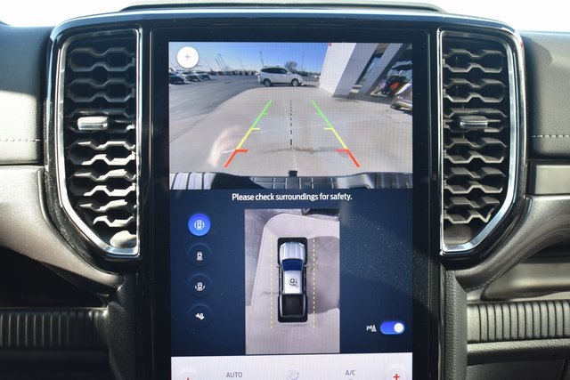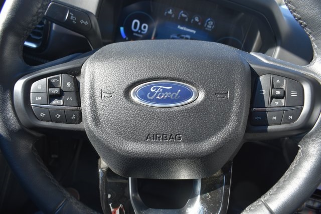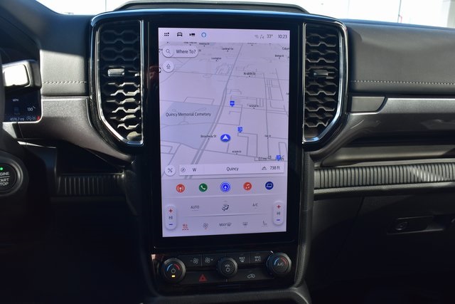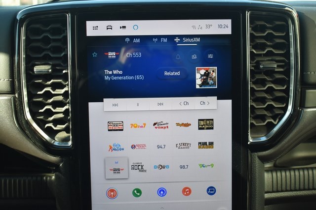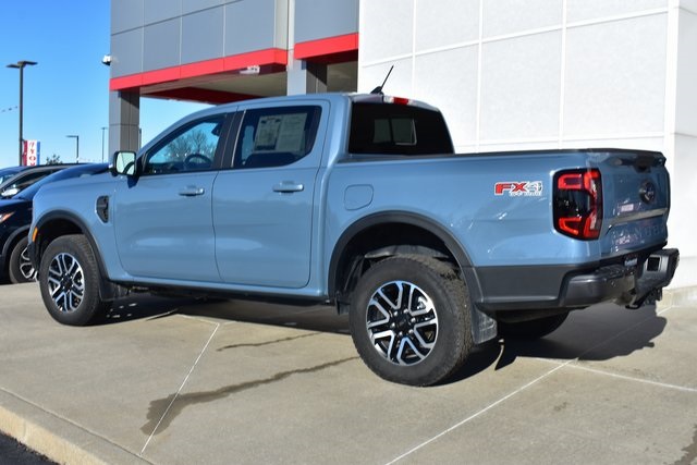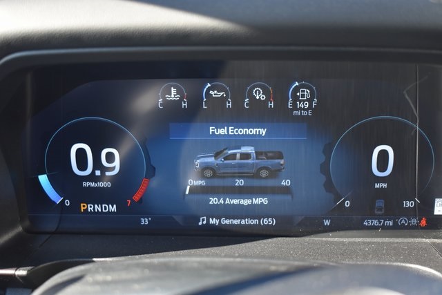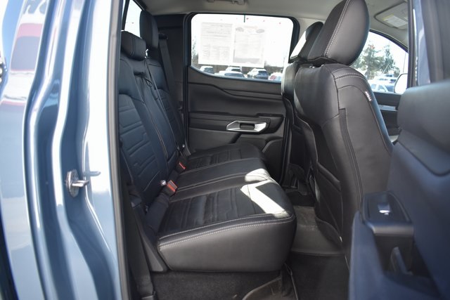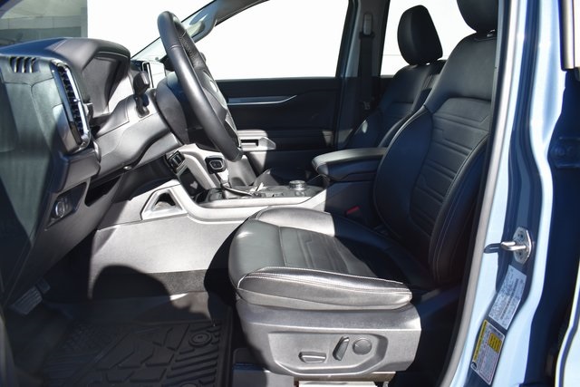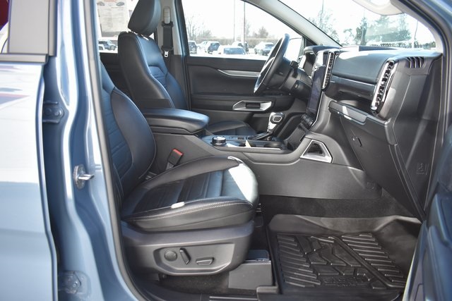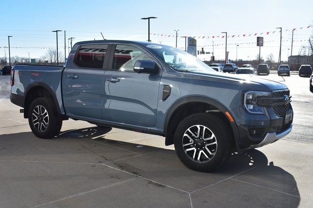2025 Ford Ranger Azure Gray Metallic Lariat 2.7L EcoBoost V6 10-Speed Automatic 4WD Towing/Camper Pkg, Clean Carfax, One Owner, Navigation, Leather, Local Trade, Backup Camera, Ranger Lariat, 10-Speed Automatic, 4WD, Azure Gray Metallic, Ebony w/Leather-Trimmed Front Heated Bucket Seats, 10 Speakers, ABS brakes, Air Conditioning, Alloy wheels, AM/FM radio: SiriusXM, Automatic temperature control, Compass, Driver door bin, Driver vanity mirror, Front Bucket Seats, Front Center Armrest, Front dual zone A/C, Front reading lights, Fully automatic headlights, Garage door transmitter, Heated door mirrors, Heated front seats, Heated steering wheel, Illuminated entry, Leather Shift Knob, Leather steering wheel, Low tire pressure warning, Memory seat, Navigation system: Connected Navigation, Outside temperature display, Overhead console, Panic alarm, Passenger door bin, Passenger vanity mirror, Power driver seat, Power passenger seat, Power steering, Power windows, Radio: B&O Sound System by Bang & Olufsen, Rain sensing wipers, Rear seat center armrest, Rear window defroster, Security system, Steering wheel mounted audio controls, Telescoping steering wheel, Tilt steering wheel, Traction control, Trail Control, Trip computer, Turn signal indicator mirrors.