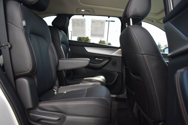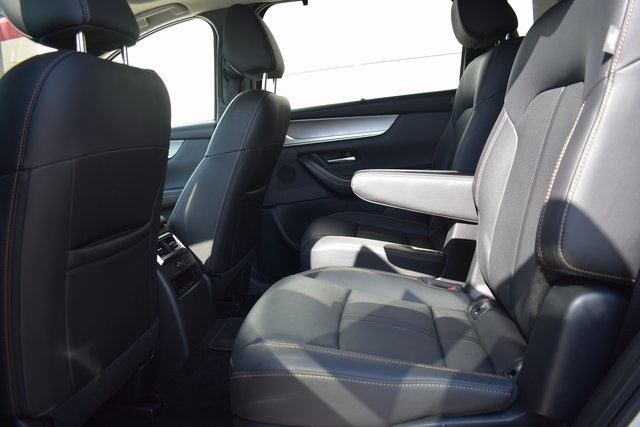 2025 Mazda CX-90 Rhodium White Premium 3.3 Turbo Premium I6 Turbo 8-Speed Automatic AWD One Owner, Navigation, Leather, Backup Camera, CX-90 3.3 Turbo Premium, 8-Speed Automatic, AWD, Rhodium White Premium, Black Leather, 12 Speakers, 2nd-Row Captain's Chairs, ABS brakes, Air Conditioning, Alloy wheels, AM/FM radio: SiriusXM, Automatic temperature control, Bumpers: body-color, Compass, Driver door bin, Driver vanity mirror, Exterior Parking Camera Rear, Front Bucket Seats, Front Center Armrest w/Storage, Front dual zone A/C, Front reading lights, Fully automatic headlights, Garage door transmitter: HomeLink, Heated door mirrors, Heated Front Bucket Seats, Heated front seats, Illuminated entry, Leather Seat Trim, Leather Shift Knob, Leather steering wheel, Low tire pressure warning, Memory seat, Navigation system: MAZDA CONNECT, Outside temperature display, Overhead console, Panic alarm, Passenger door bin, Passenger vanity mirror, Power door mirrors, Power driver seat, Power Liftgate, Power moonroof, Power passenger seat, Power steering, Power windows, Radio data system, Rear air conditioning, Rear seat center armrest, Rear window defroster, Rear window wiper, Remote keyless entry, Speed control, Split folding rear seat, Spoiler, Steering wheel mounted audio controls, Telescoping steering wheel, Tilt steering wheel, Traction control, Turn signal indicator mirrors.