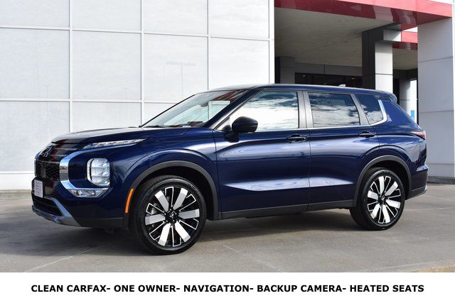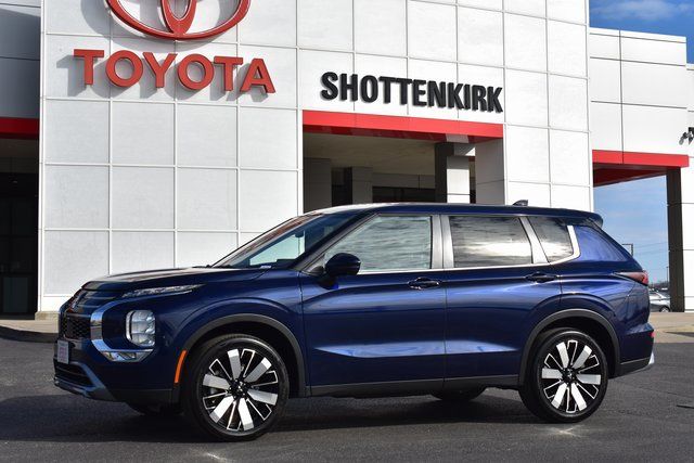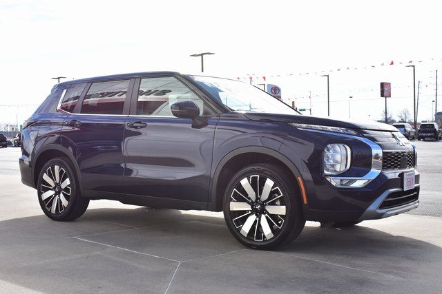 2025 Mitsubishi Outlander Cosmic Blue Metallic SE 2.5L I4 DOHC 16V LEV3-ULEV50 181hp CVT 4WD Clean Carfax, One Owner, Navigation, Backup Camera, Outlander SE, CVT, 4WD, Cosmic Blue Metallic, 12.3" Digital Driver Display, 3rd row seats: split-bench, 8 Speakers, ABS brakes, Active Cruise Control, Air Conditioning, Alloy wheels, AM/FM radio: SiriusXM, Auto-dimming Rear-View mirror, Automatic temperature control, Bumpers: body-color, Driver door bin, Driver vanity mirror, Dynamic Sound Yamaha Ultimate, Electronic Stability Control, Exterior Parking Camera Rear, Front Bucket Seats, Front Center Armrest w/Storage, Front dual zone A/C, Front reading lights, Fully automatic headlights, Heated door mirrors, Heated Front Bucket Seats, Heated front seats, Illuminated entry, Leather Shift Knob, Leather steering wheel, Low tire pressure warning, Navigation System, Outside temperature display, Overhead console, Passenger door bin, Passenger vanity mirror, Power door mirrors, Power driver seat, Power Liftgate, Power Panoramic Sunroof, Power steering, Power windows, Radio data system, Rear seat center armrest, Rear window defroster, Rear window wiper, Reclining 3rd row seat, Remote keyless entry, SE Tech Package, Security system, Speed control, Split folding rear seat, Spoiler, Steering wheel mounted audio controls, Telescoping steering wheel, Tilt steering wheel, Traction control, Turn signal indicator mirrors, Variably intermittent wipers.