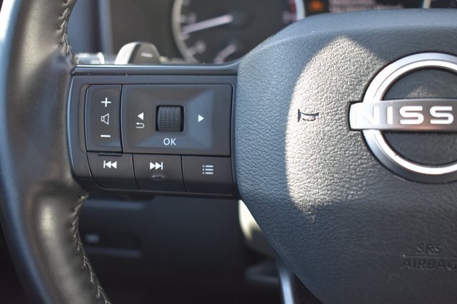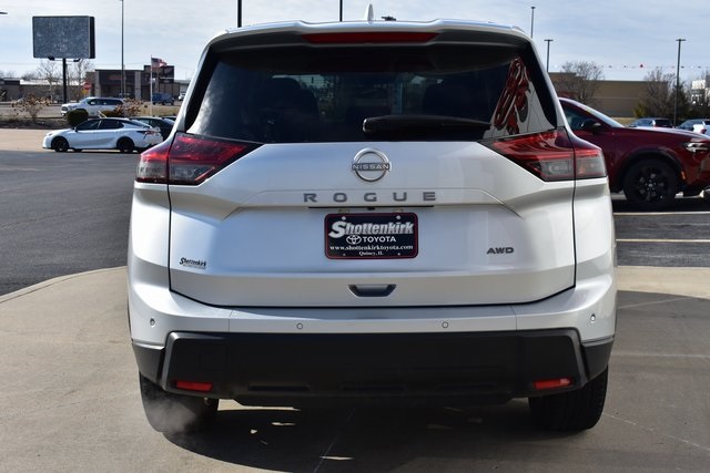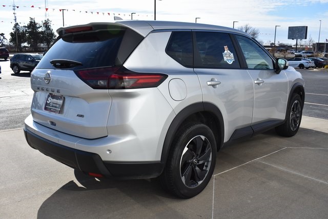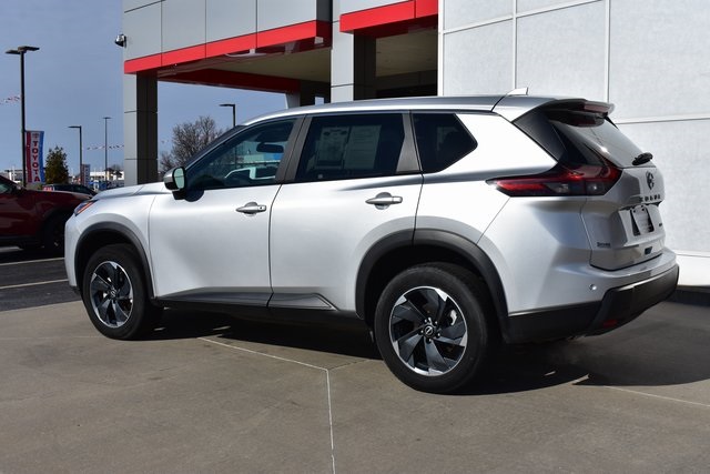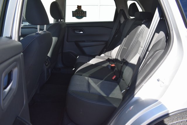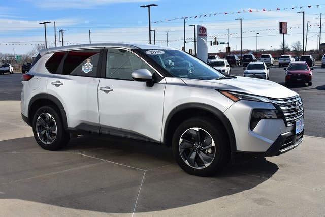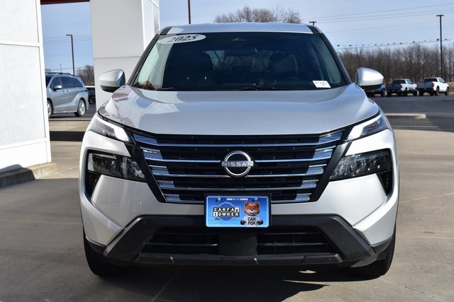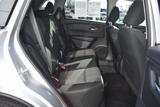 2025 Nissan Rogue Brilliant Silver Metallic SV 1.5L DOHC CVT with Xtronic AWD One Owner, Backup Camera, Rogue SV, CVT with Xtronic, AWD, Brilliant Silver Metallic, Charcoal Cloth, 6 Speakers, ABS brakes, Air Conditioning, Alloy wheels, AM/FM radio: SiriusXM, Automatic temperature control, Bumpers: body-color, Driver door bin, Driver vanity mirror, Front Bucket Seats, Front Bucket Seats with 8-Way Power Driver Seat, Front Center Armrest, Front dual zone A/C, Front reading lights, Fully automatic headlights, Heated door mirrors, Illuminated entry, Low tire pressure warning, Occupant sensing airbag, Outside temperature display, Overhead console, Panic alarm, Passenger door bin, Passenger vanity mirror, Power door mirrors, Power driver seat, Power Liftgate, Power steering, Power windows, Radio data system, Radio: NissanConnect with 6 Speakers, Rear seat center armrest, Rear window defroster, Rear window wiper, Remote keyless entry, Speed control, Split folding rear seat, Spoiler, Steering wheel mounted audio controls, Tilt steering wheel, Traction control.
