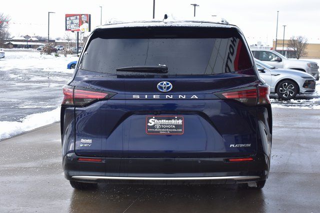 2025 Toyota Sienna Blueprint Platinum 2.5L I4 Hybrid w/VVT-iE DOHC 16V CVT FWD Clean Carfax, Navigation, Sunroof/Moonroof, Leather, Local Trade, Backup Camera, Sienna Platinum 7 Passenger, CVT, FWD, Blueprint, Black w/SofTex Seat Trim, 12 Speakers, 3rd row seats: split-bench, ABS brakes, Air Conditioning, Alloy wheels, AM/FM radio: SiriusXM, Auto-dimming door mirrors, Automatic temperature control, Bumpers: body-color, Compass, Driver door bin, Driver vanity mirror, Driver's Seat Mounted Armrest, Exterior Parking Camera Rear, Front Bucket Seats, Front dual zone A/C, Front Heated Bucket Seats, Front reading lights, Fully automatic headlights, Heated door mirrors, Heated front seats, Heated rear seats, Heated steering wheel, Illuminated entry, Lane Departure Warning System, Leather Seat Material, Leather Shift Knob, Leather steering wheel, Low tire pressure warning, Memory seat, Navigation System, Occupant sensing airbag, Outside temperature display, Overhead console, Panic alarm, Passenger door bin, Passenger seat mounted armrest, Passenger vanity mirror, Power door mirrors, Power driver seat, Power Liftgate, Power moonroof, Power passenger seat, Power steering, Power windows, Radio data system, Rear air conditioning, Rear dual zone A/C, Rear reading lights, Rear window defroster, Rear window wiper, Reclining 3rd row seat, Remote keyless entry, Speed control, Split folding rear seat, Spoiler, Steering wheel memory, Steering wheel mounted audio controls, Tilt steering wheel, Traction control, Trip computer, Turn signal indicator mirrors, Ventilated front seats.